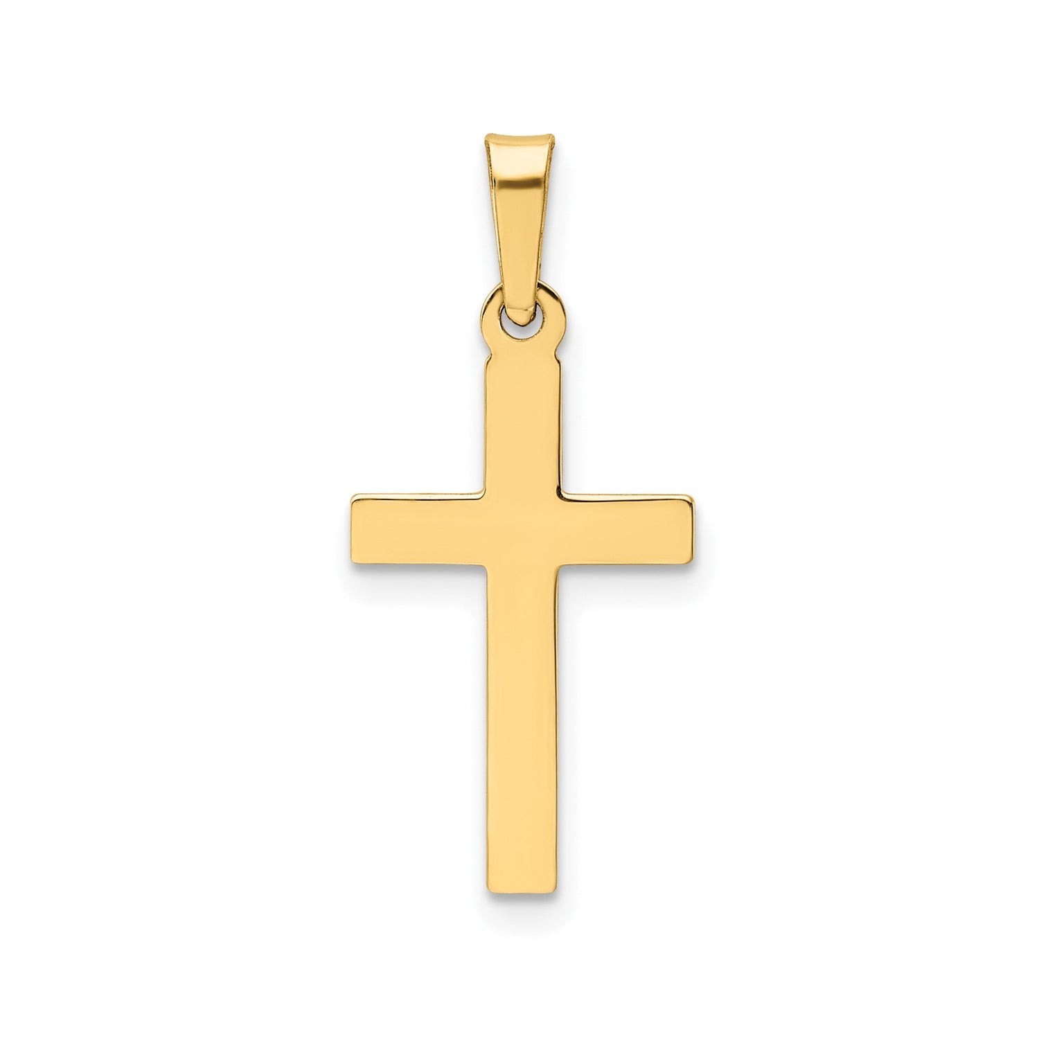 14k Yellow Gold Latin Cross Pendant, Polished Plain Christian Charm for Men or Women