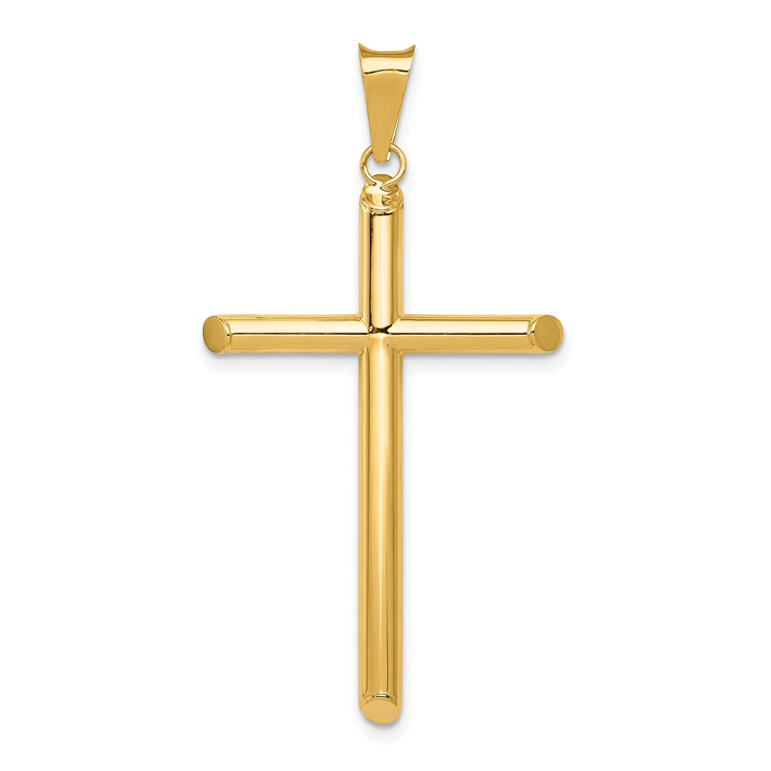 14k Yellow Gold Latin Cross Pendant, Polished Religious Charm for Men and Women