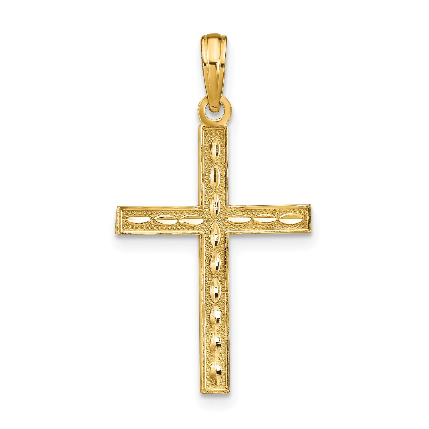 With its stunning craftsmanship and reversible design, the Reversible Latin Cross Charm Pendant in Real 14k Yellow Gold is a must-have for any jewelry enthusiast seeking beauty and functionality in one elegant piece.