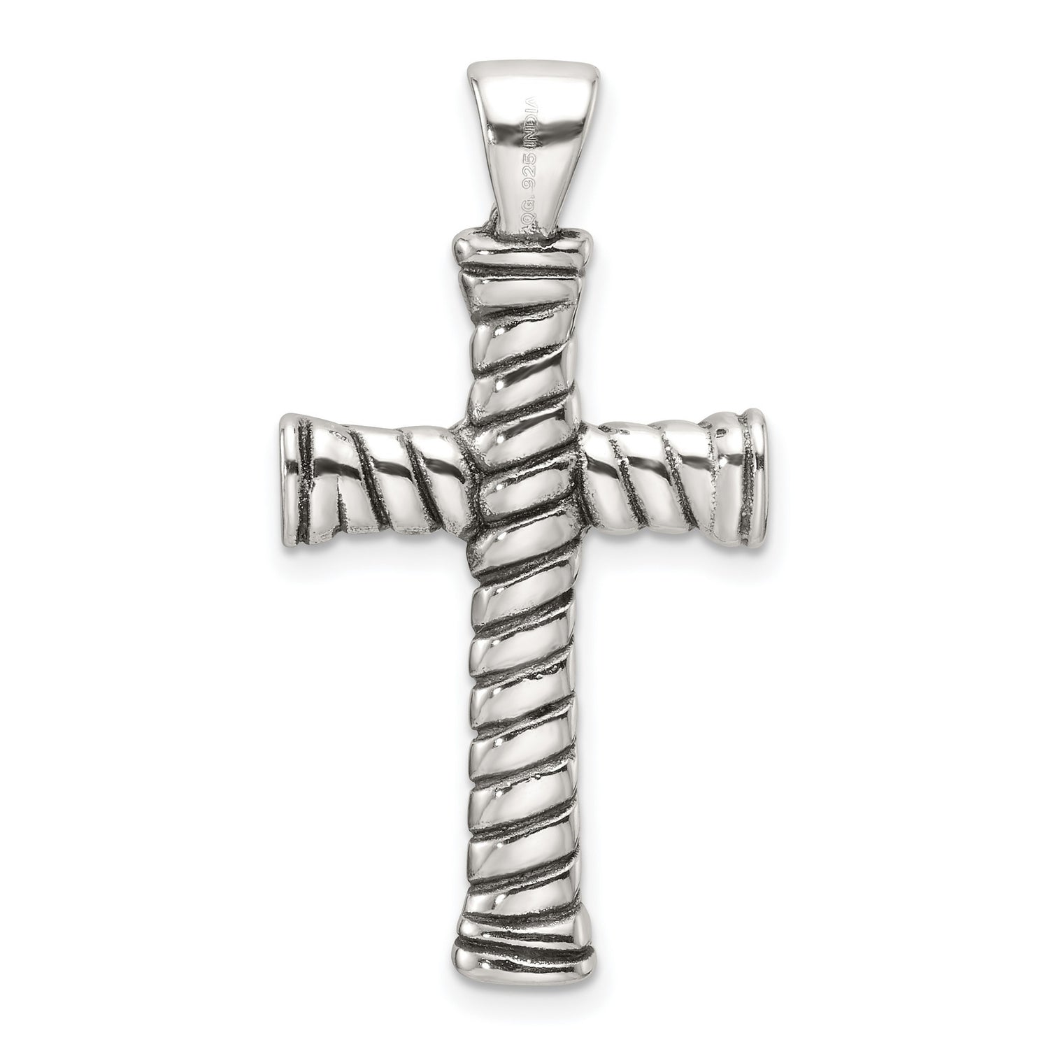 Sterling Silver Cross Pendant with Antiqued Rope Design and Oxidized Finish
