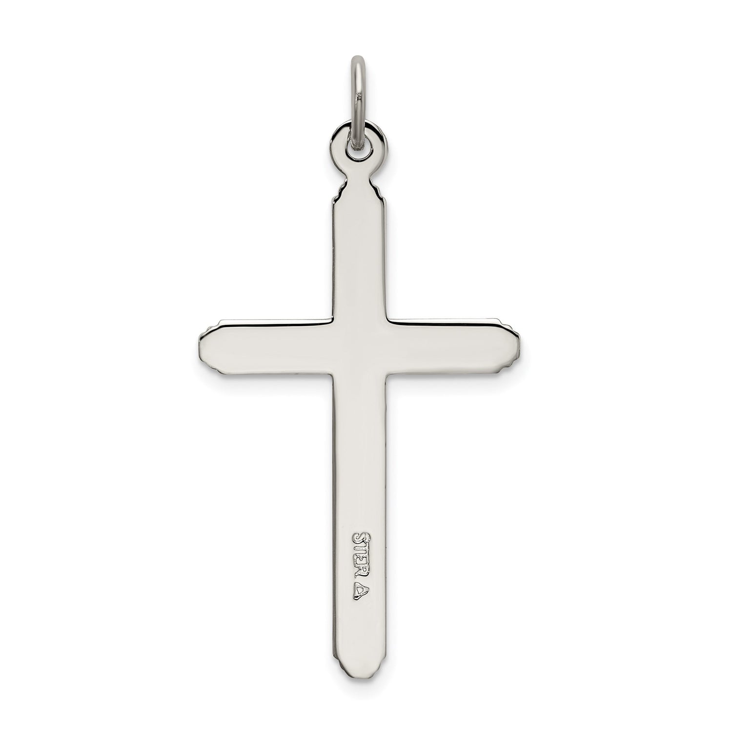 Polished Grooved Cross Charm Pendant in Real 925 Sterling Silver