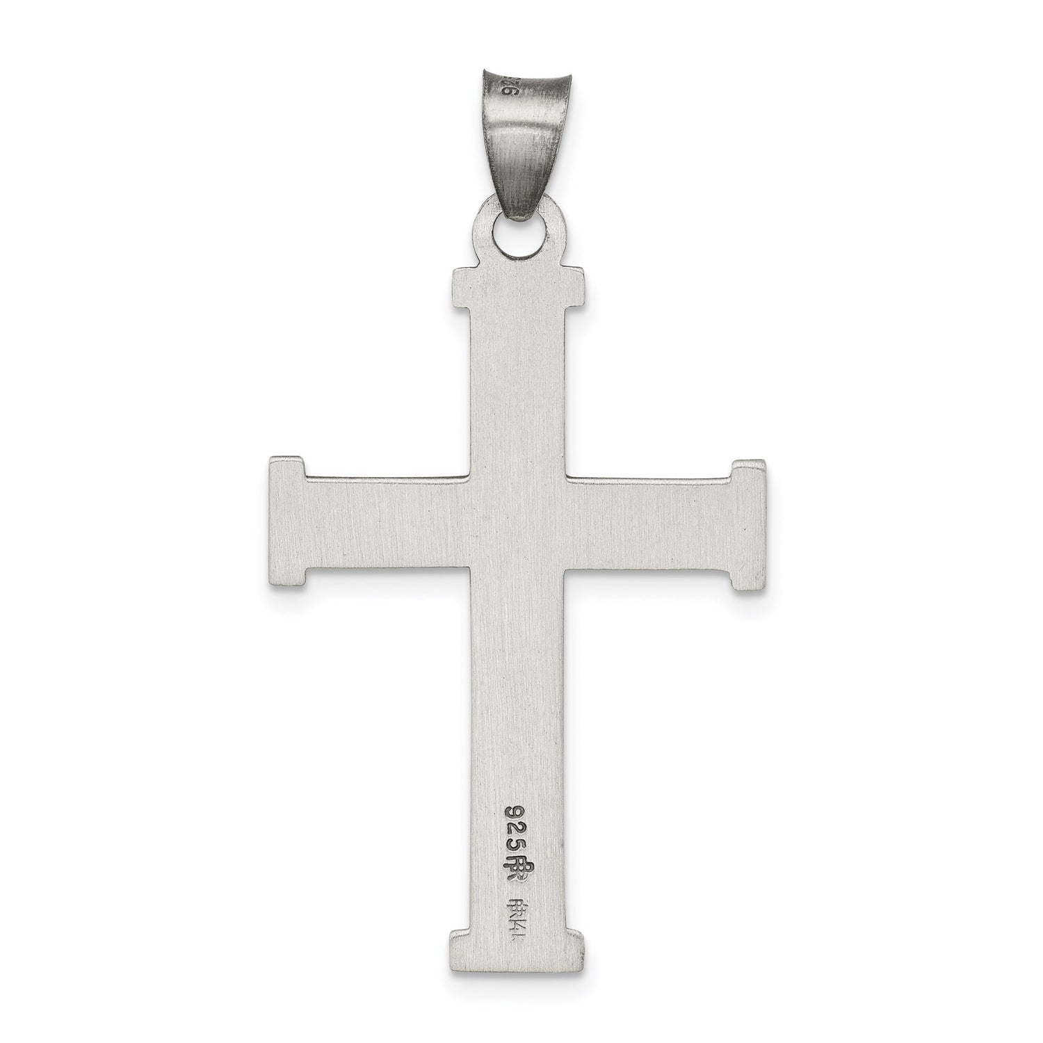 Sterling Silver Cross Pendant with Brushed and Polished Finish, Oxidized Latin Design, Vintage Style