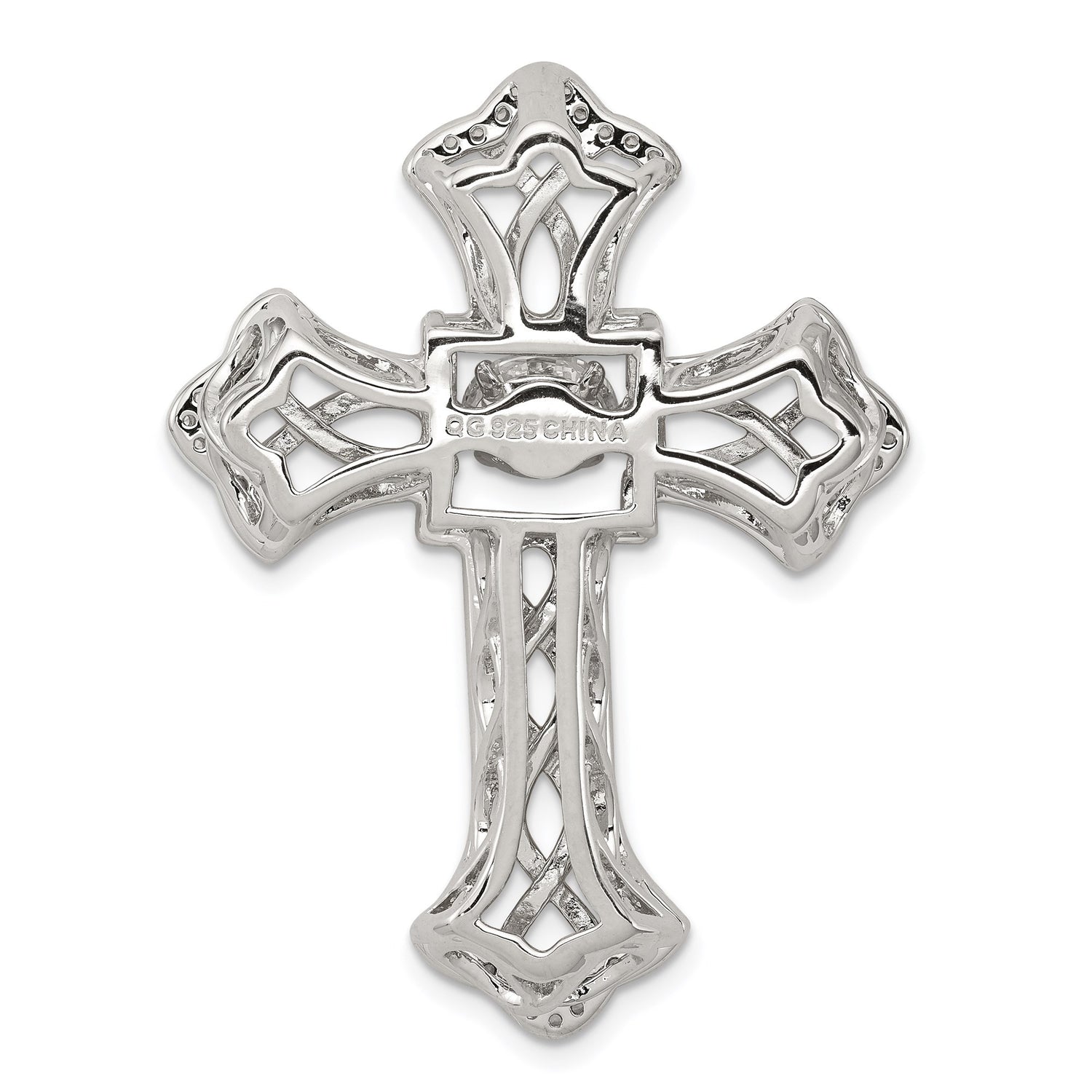 Sterling Silver Cross Pendant with Cubic Zirconia, Modern Stylized Dimensional Design