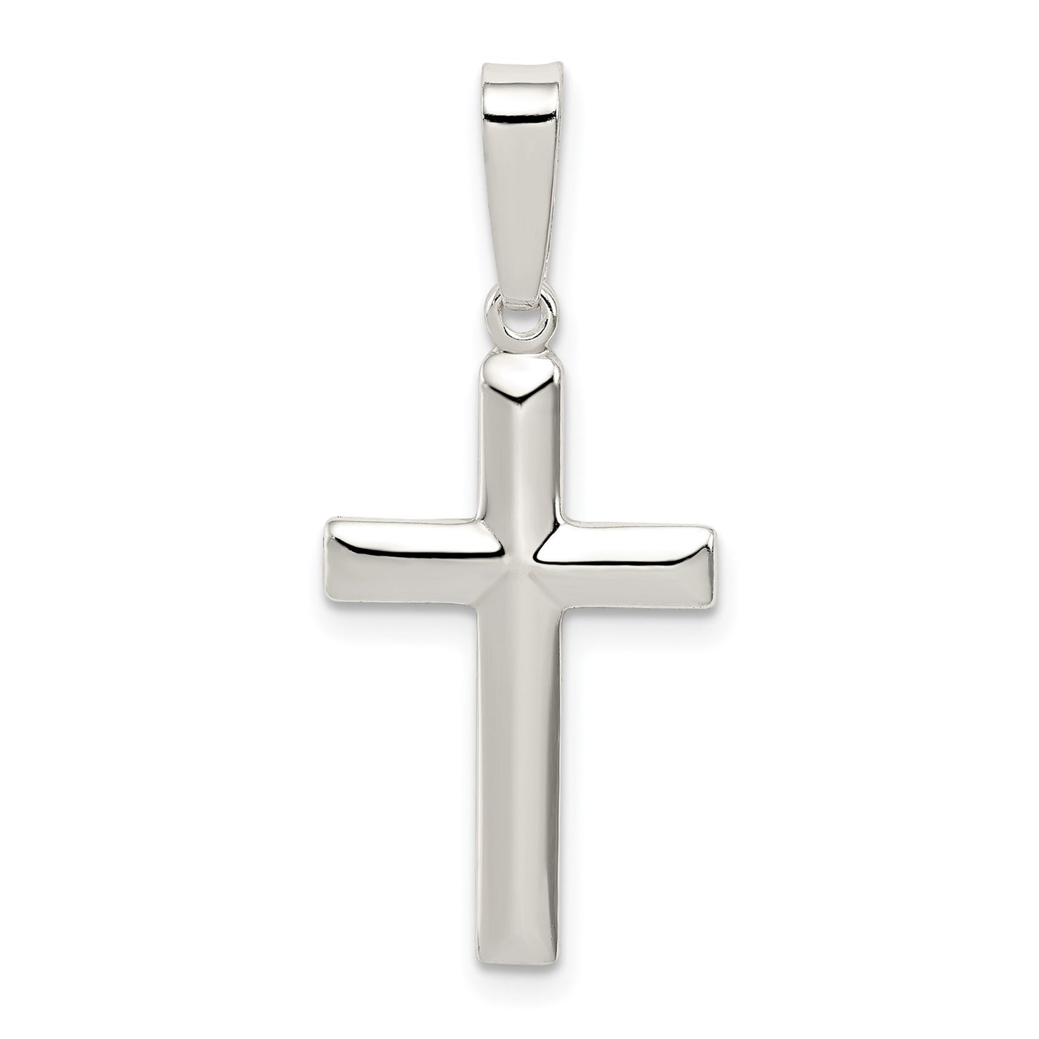 Sterling Silver Cross Pendant with Mirror Finish, Unisex Minimalist Spiritual Design