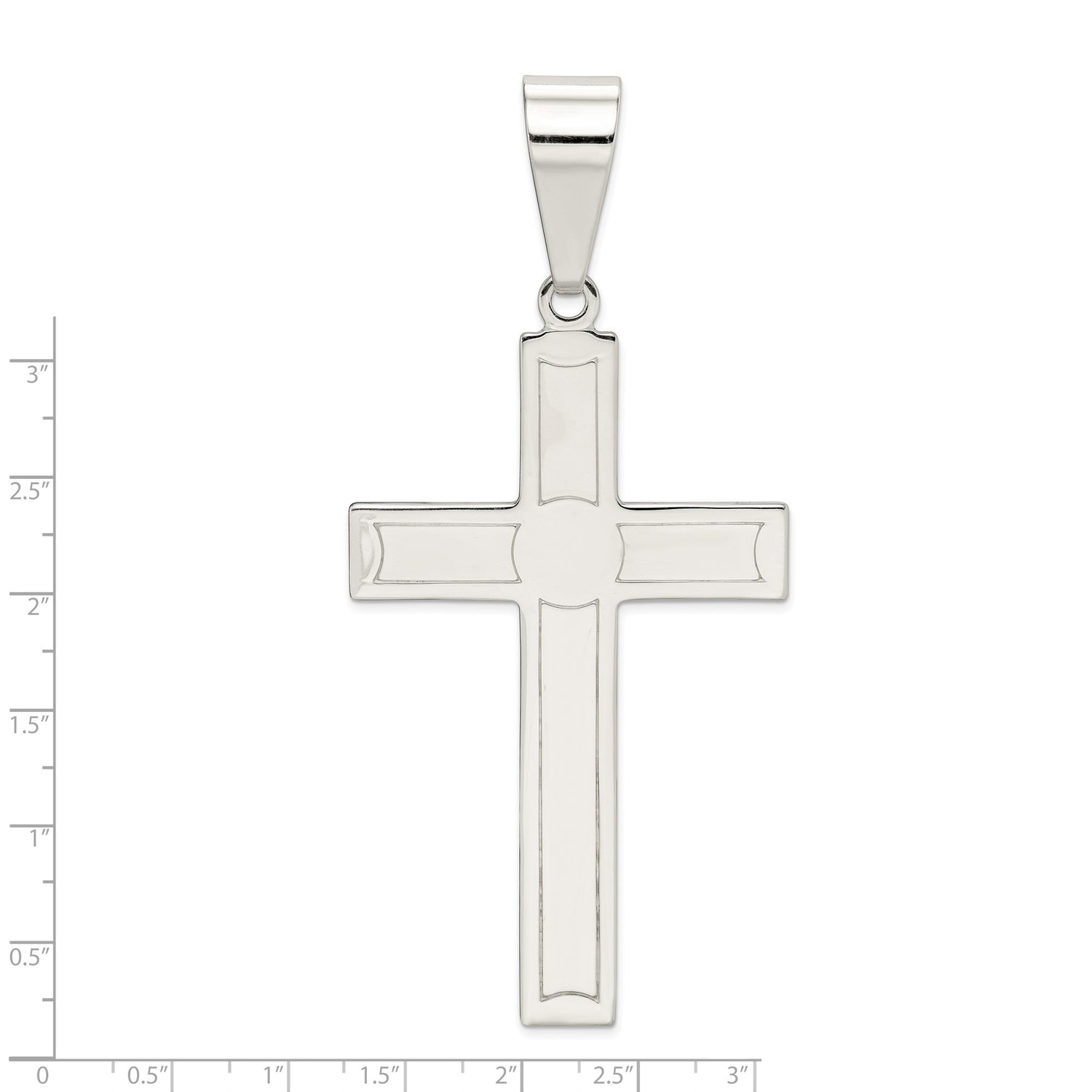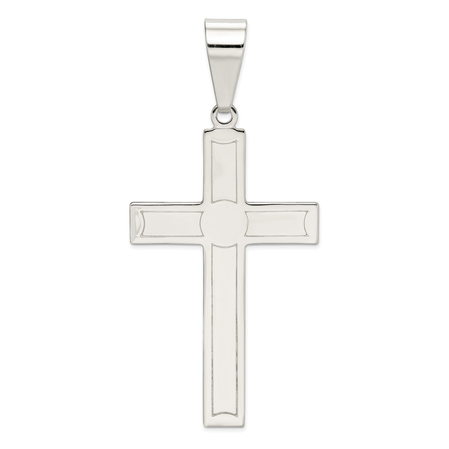 Sterling Silver Cross Pendant with Polished Bevels, Modern Spiritual Design for Adults