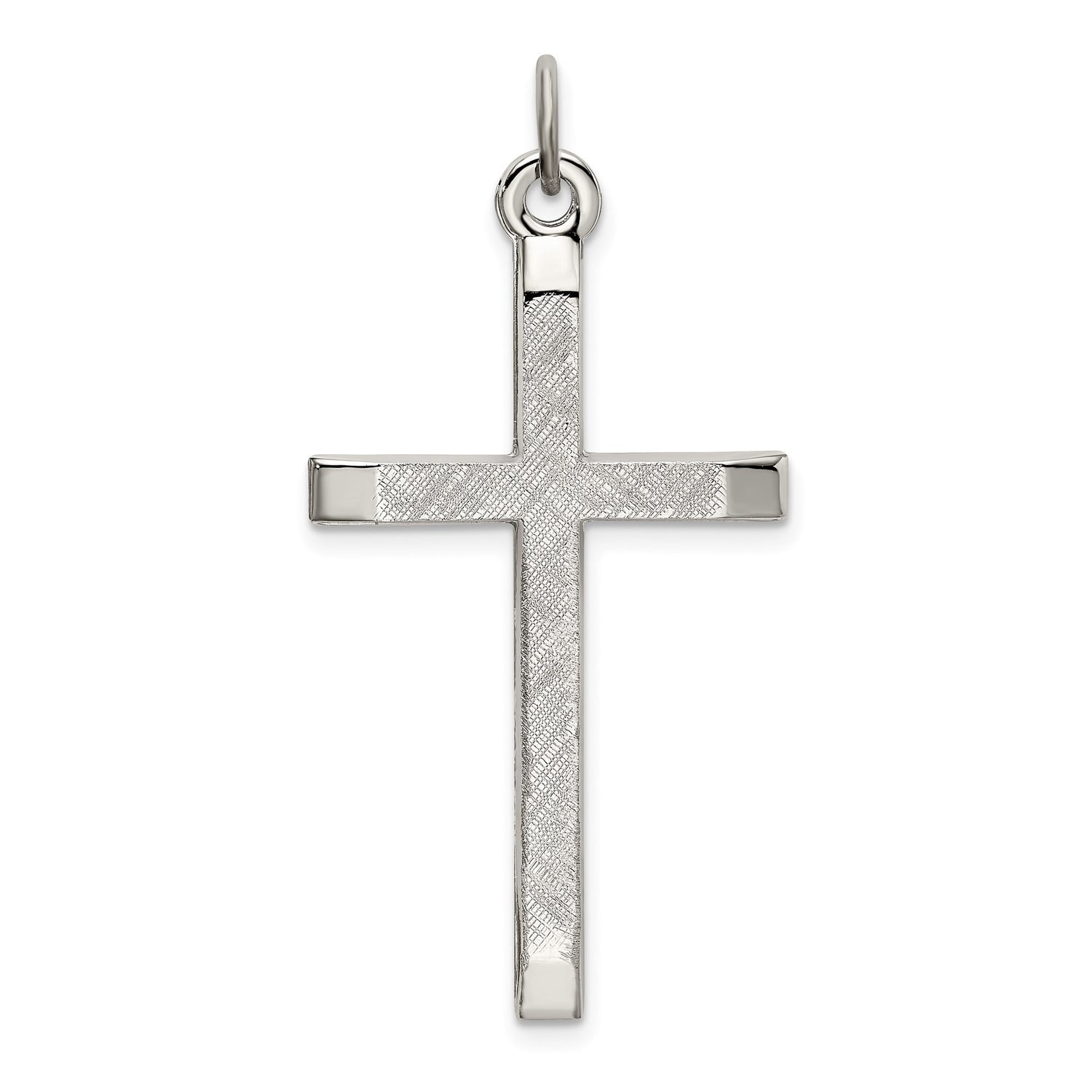 Embrace the blend of tradition and modernity with this polished and textured cross charm pendant, a testament to exquisite craftsmanship in sterling silver jewelry.