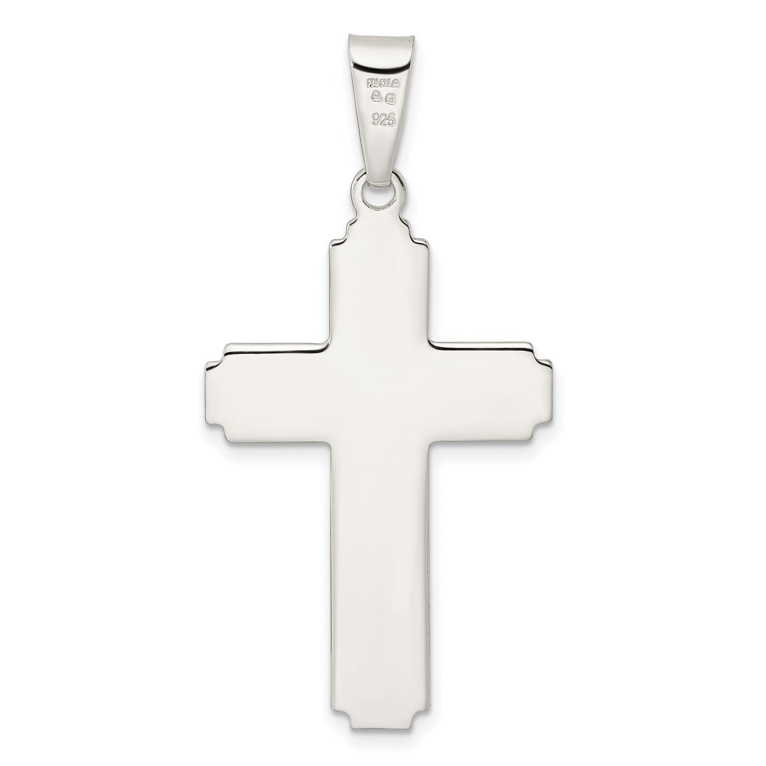 Sterling Silver Cross Pendant with Polished Layered Latin Design, Spiritual Jewelry for Men and Women