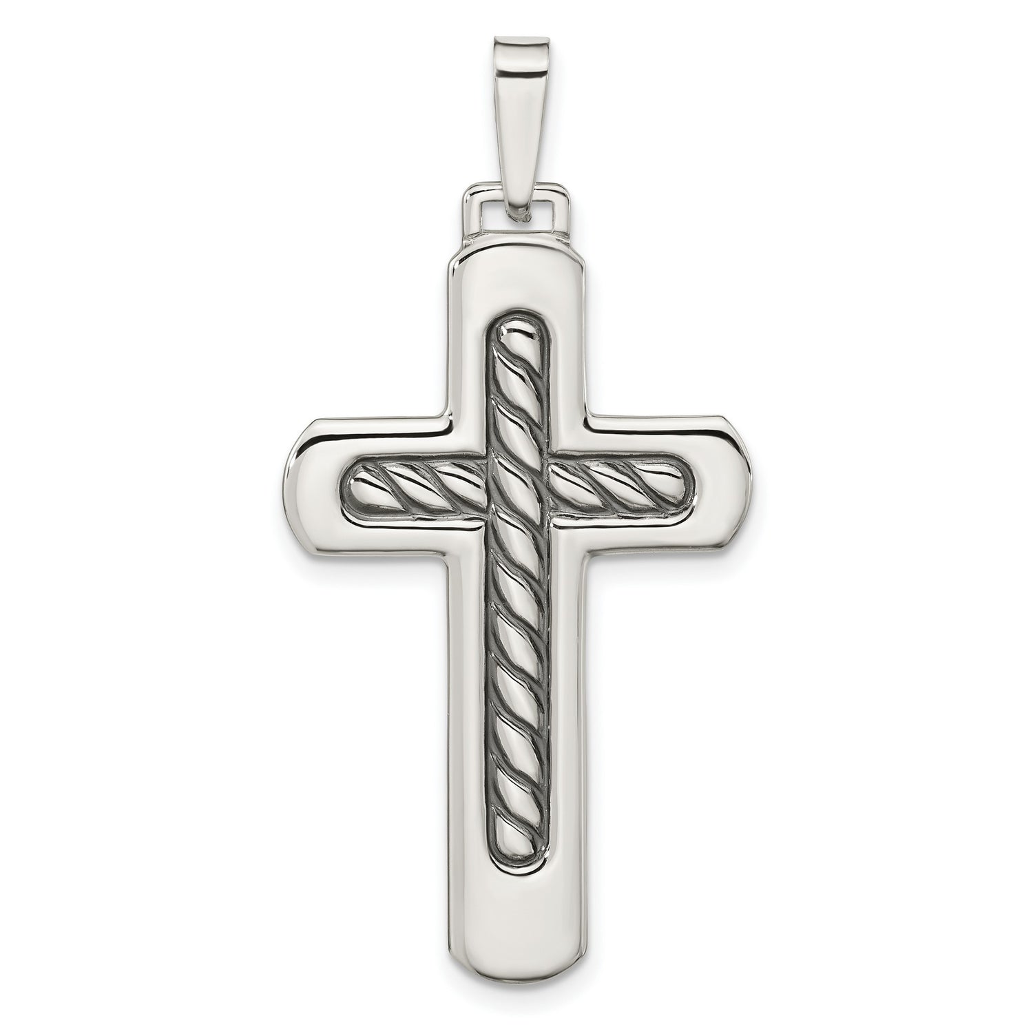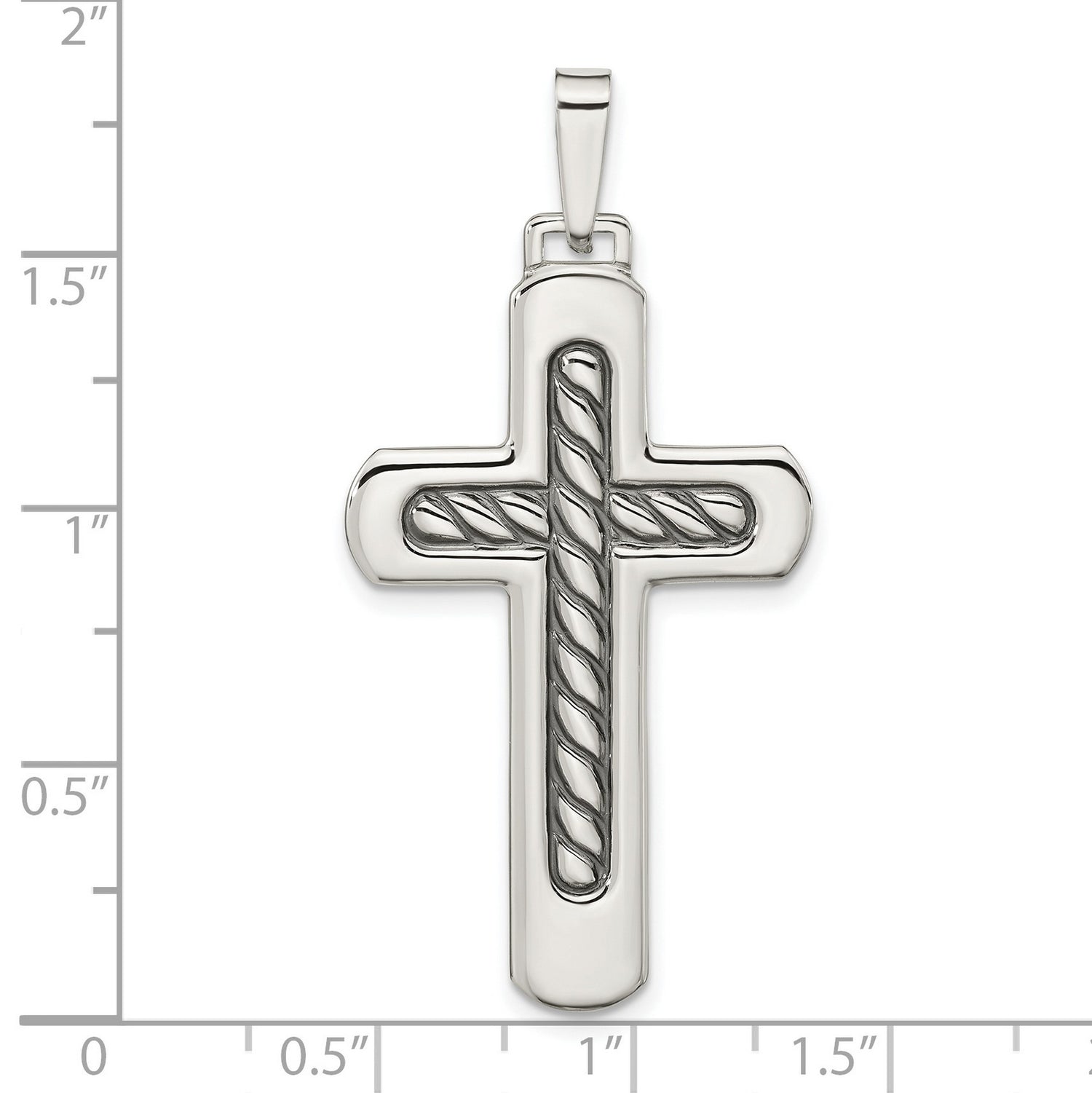 Sterling Silver Cross Pendant with Twisted Rope Detail and Textured Finish