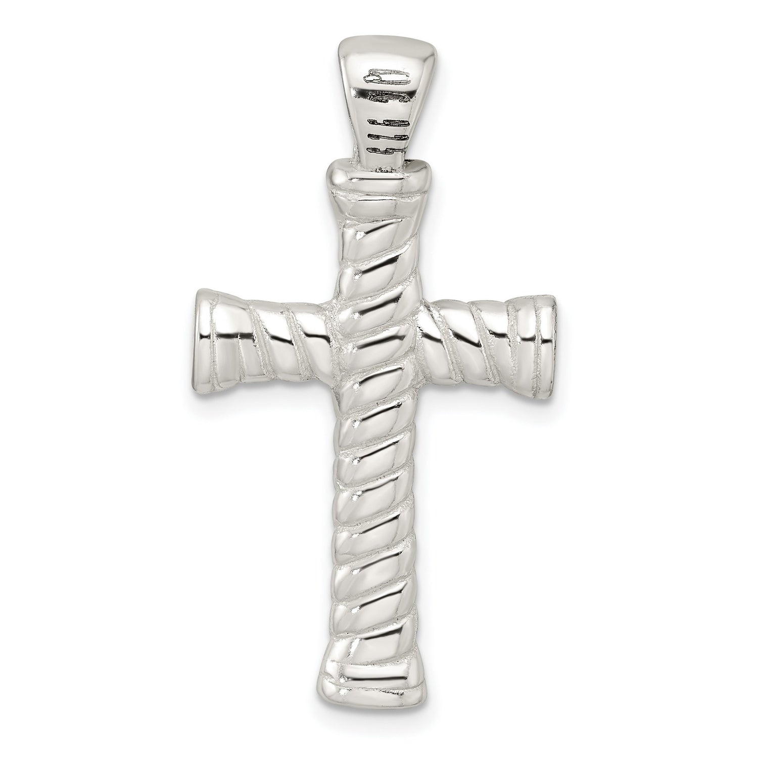 Sterling Silver Cross Pendant with Twisted Rope Texture and Mirror Finish for Men and Women