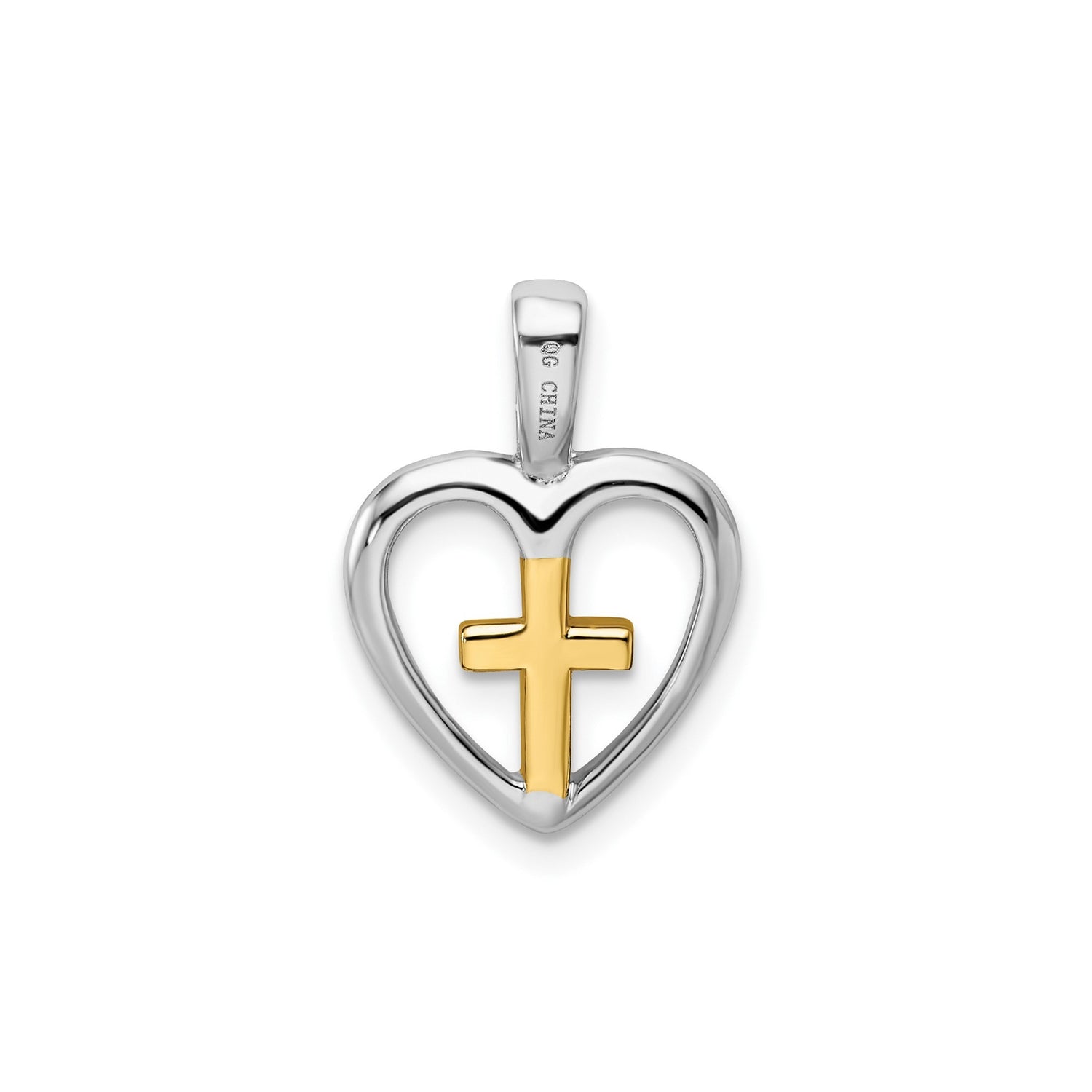 Sterling Silver Cross Pendant with Vermeil Gold Accent and Heart Detail, Modern Religious Design