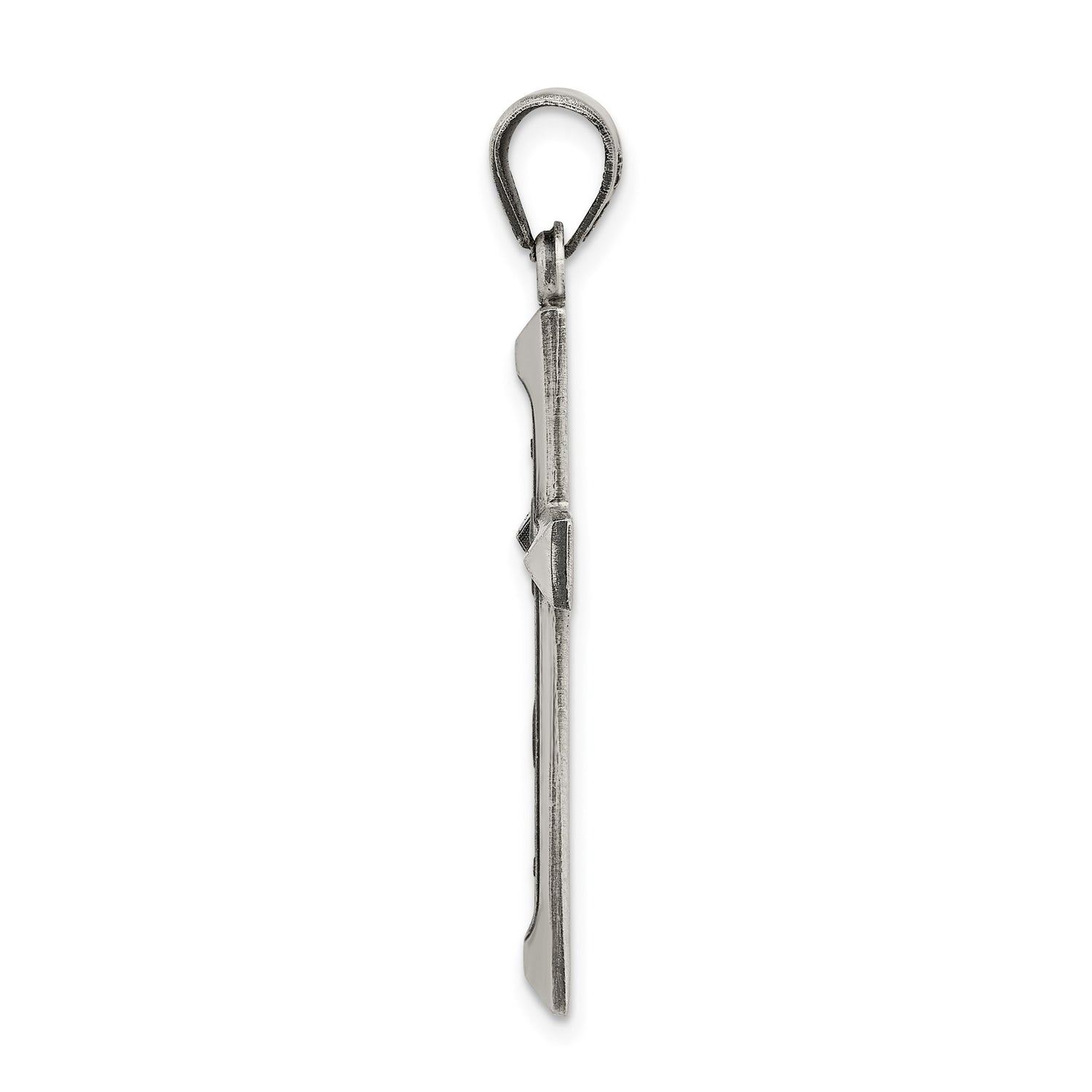 Sterling Silver Latin Cross Pendant with Starburst Detail and Brushed Finish
