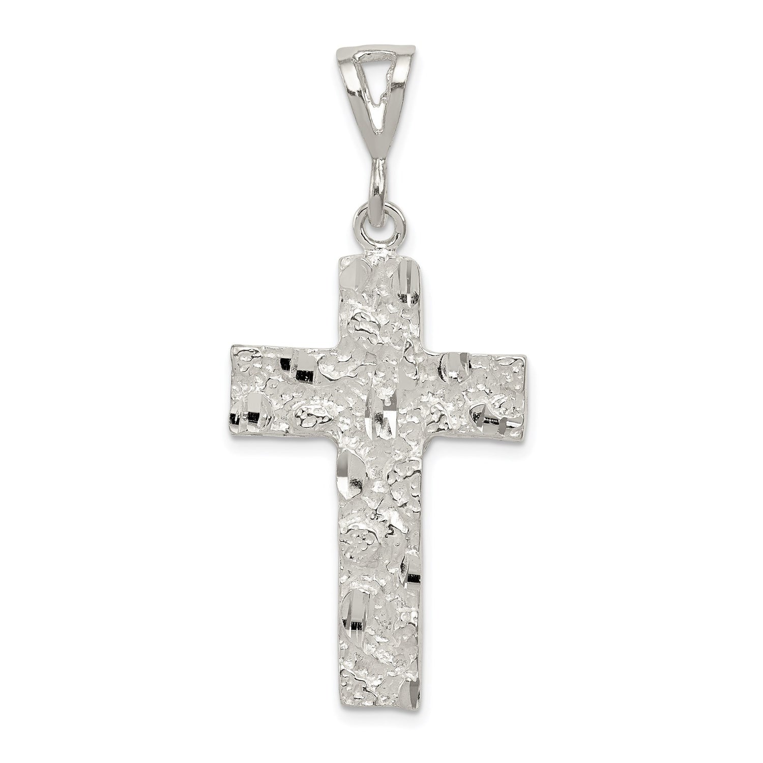Sterling Silver Textured Nugget Cross Pendant with Fine Chain, Unisex Religious Jewelry