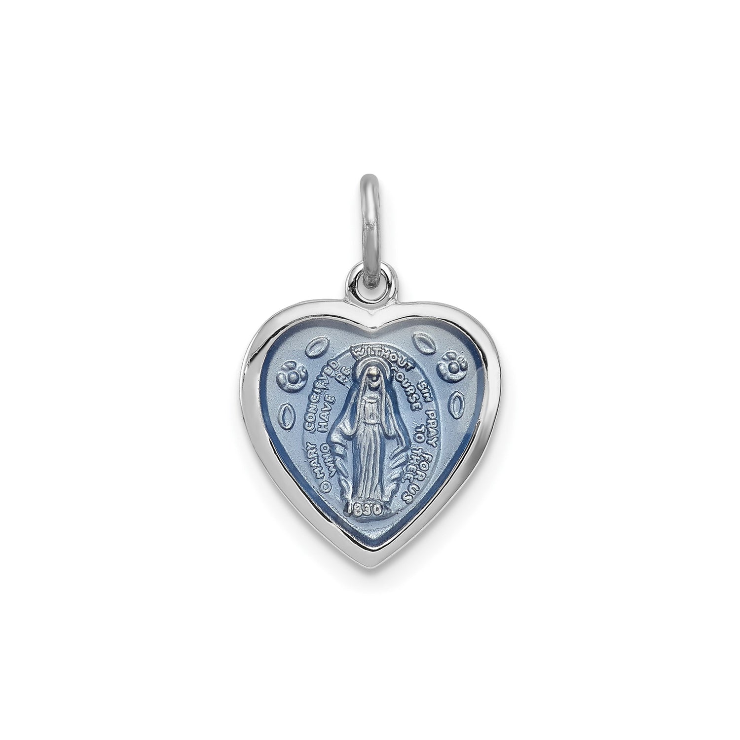 Sterling Silver Heart Pendant with Miraculous Medal and Virgin Mary Prayer Inscription