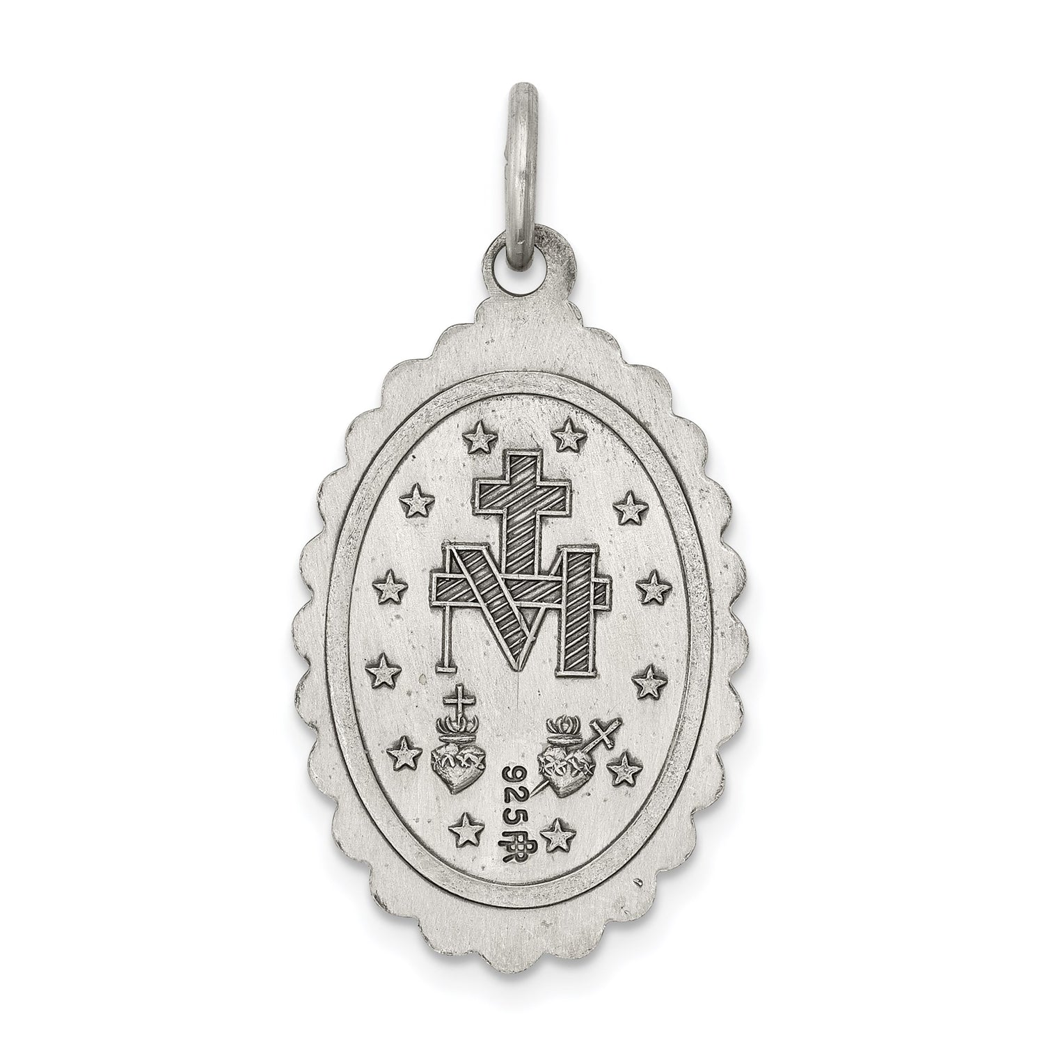 Antiqued Miraculous Medal Charm Pendant in Real 925 Sterling Silver