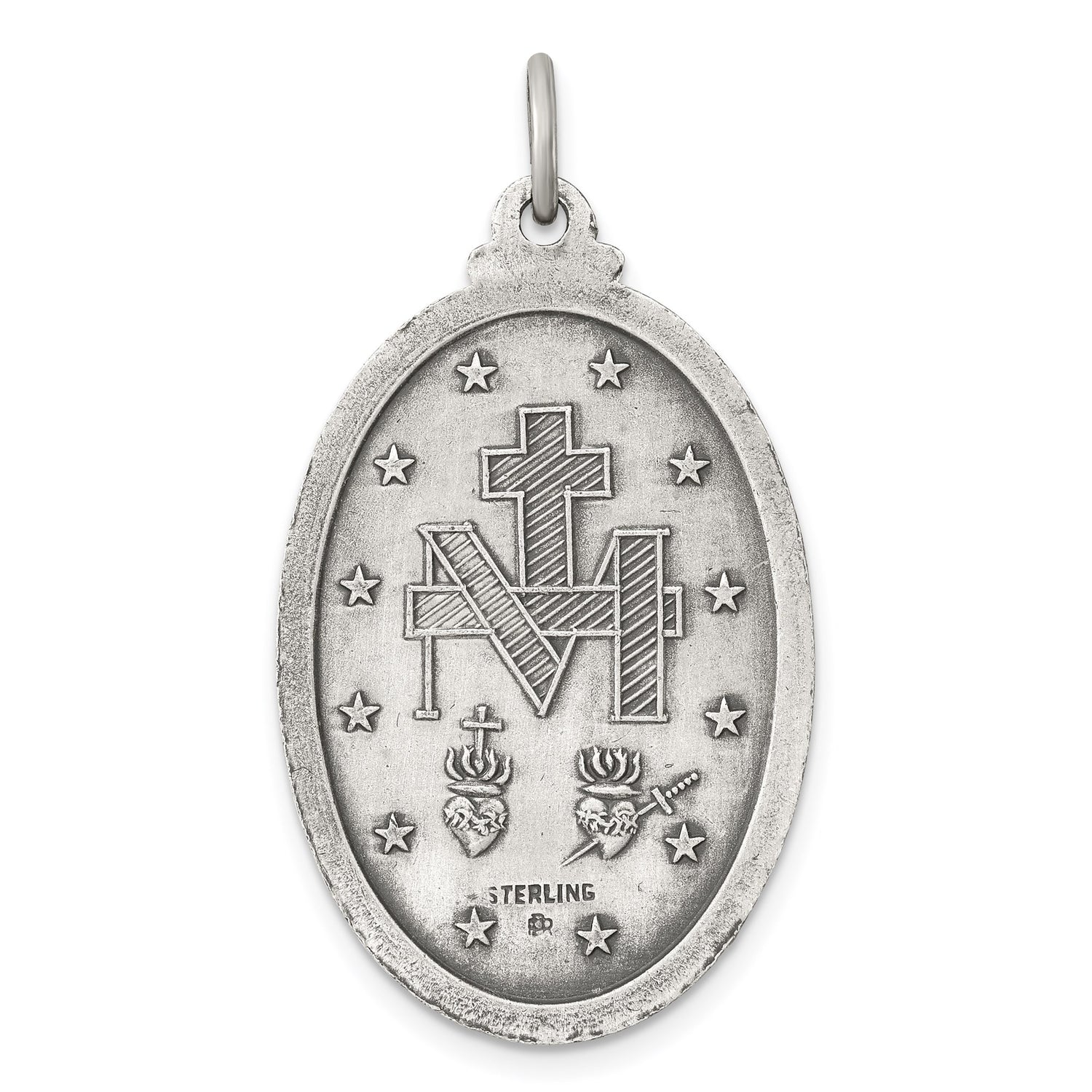 Antiqued Miraculous Medal Charm Pendant in Real 925 Sterling Silver
