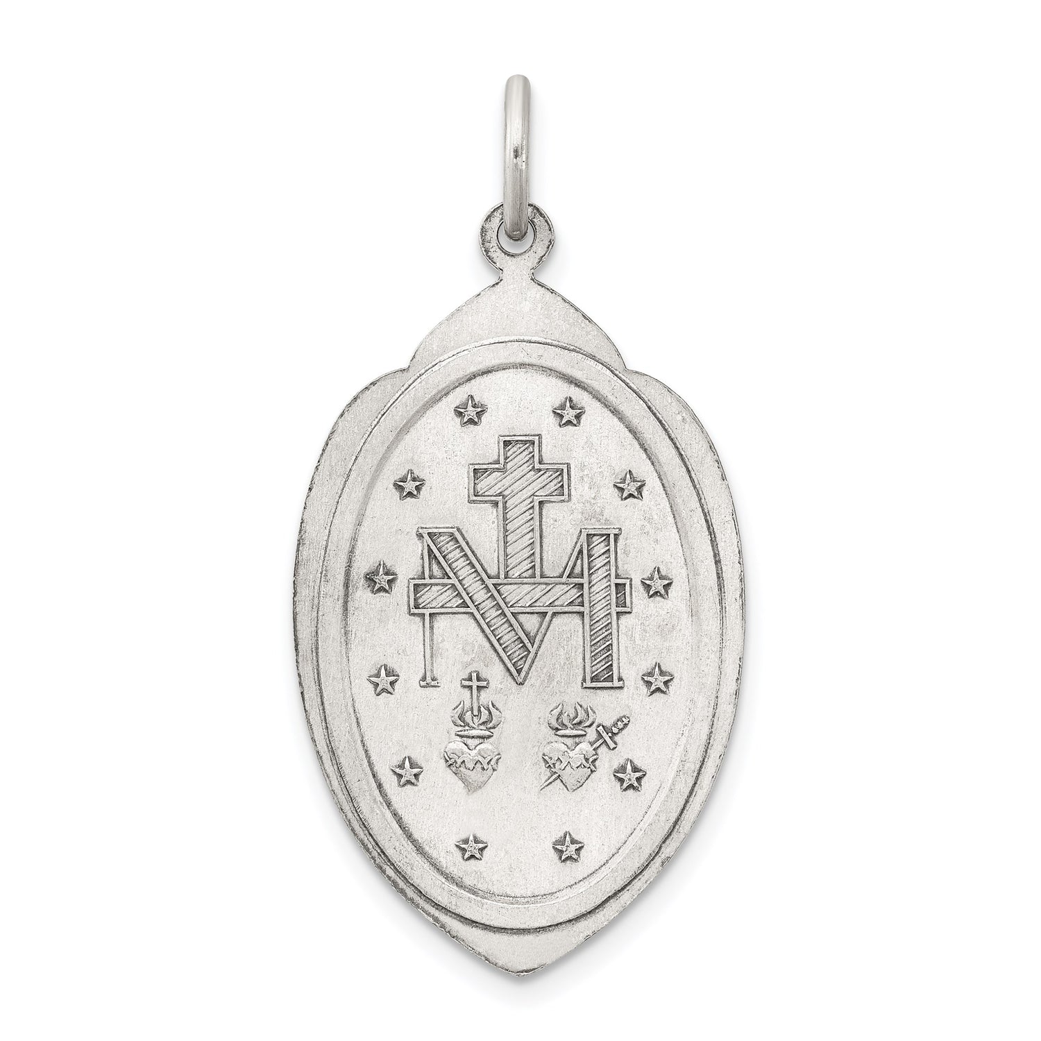 Antiqued Miraculous Medal Charm Pendant in Real 925 Sterling Silver
