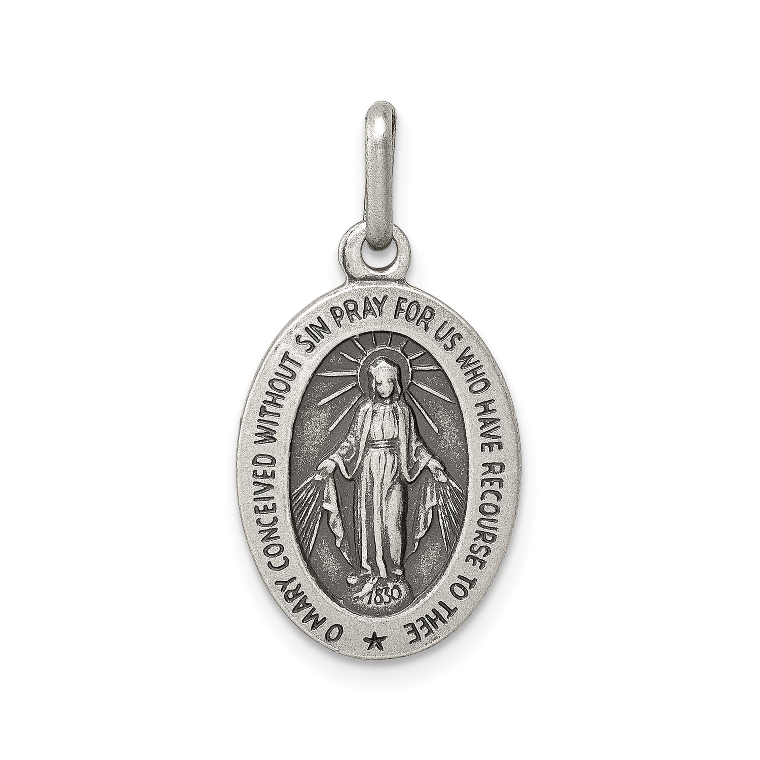 Antiqued Miraculous Medal Charm Pendant in Real 925 Sterling Silver