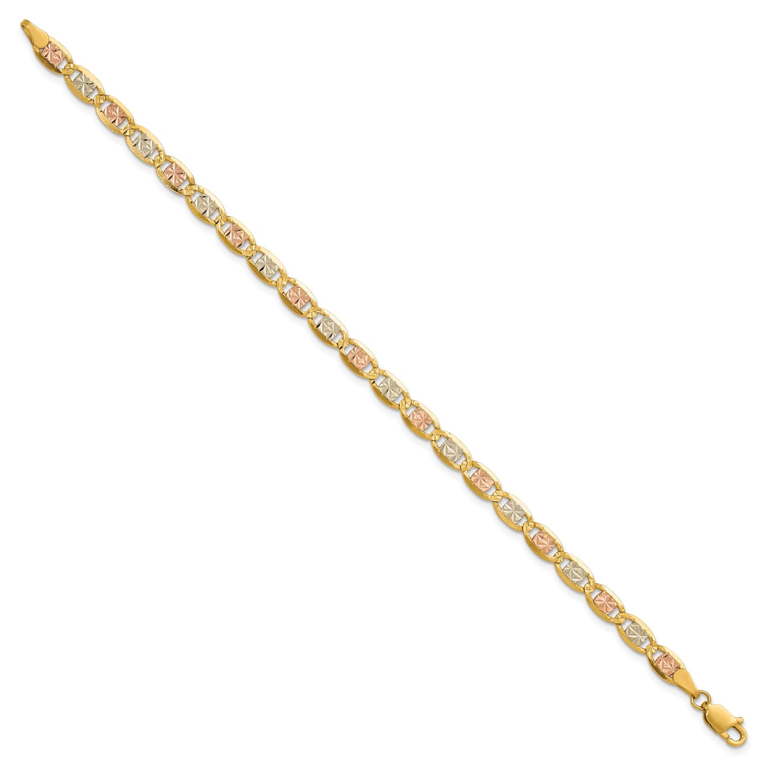 14K Tri-color Gold Open link Chain Anklet, 4.65 mm