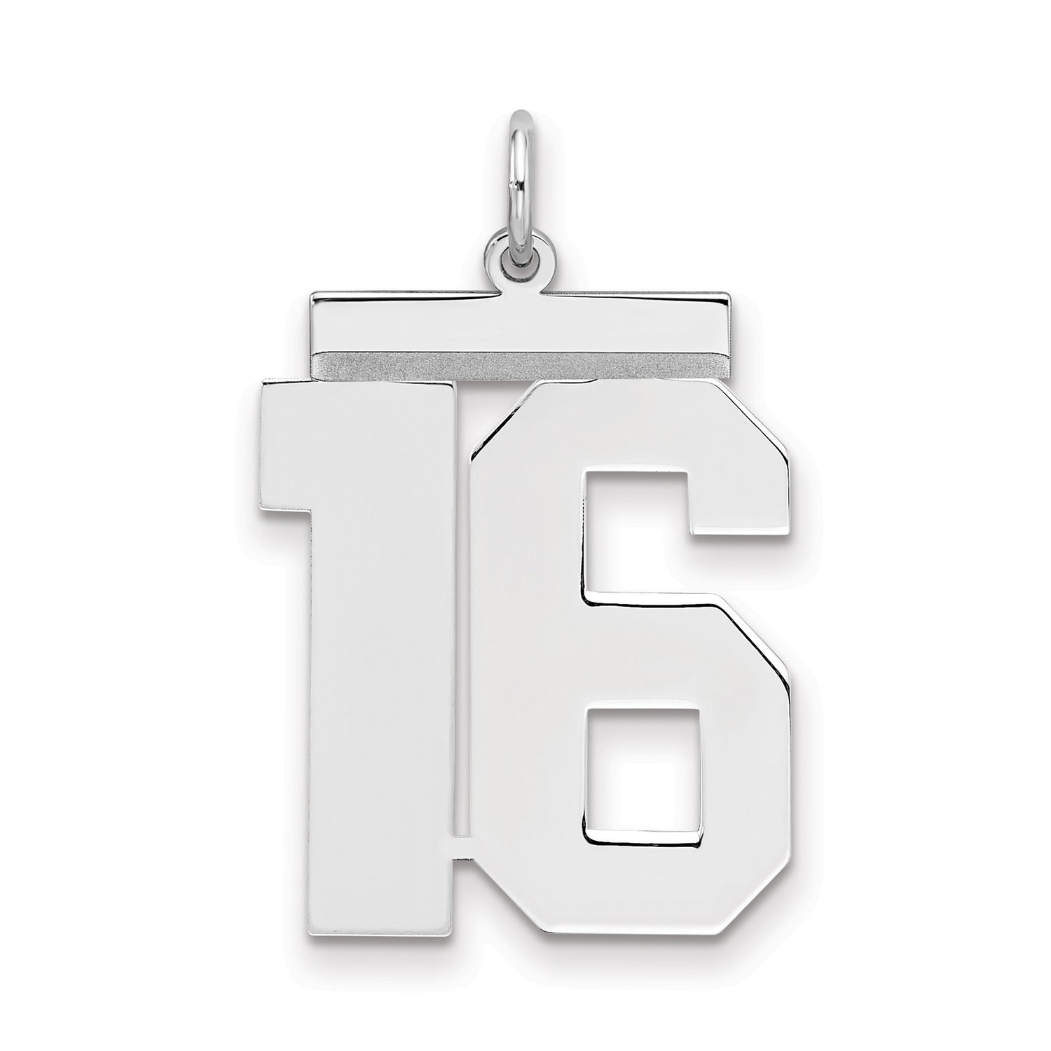 Large Polished Number 16 Charm Pendant in Real 925 Sterling Silver