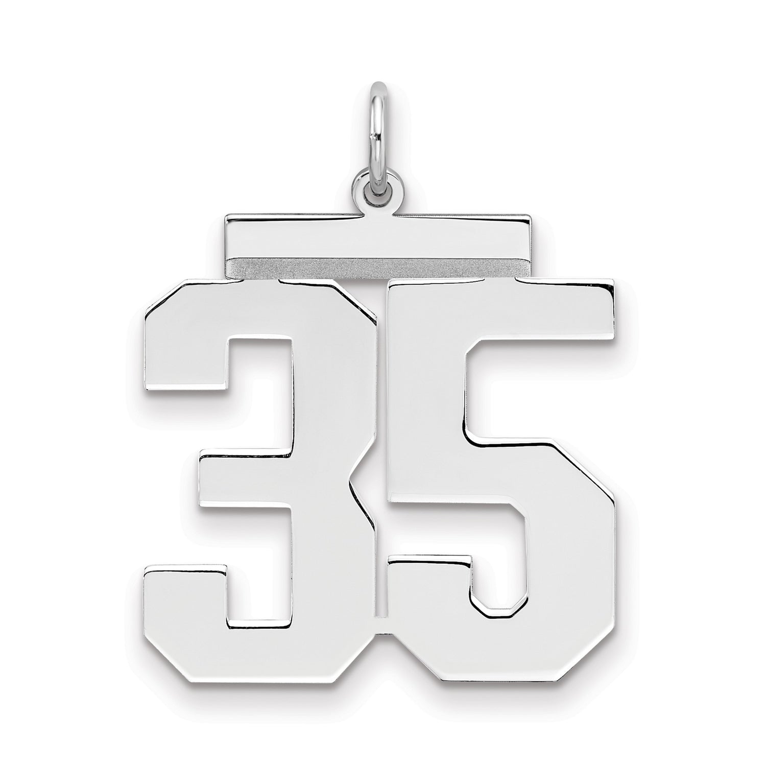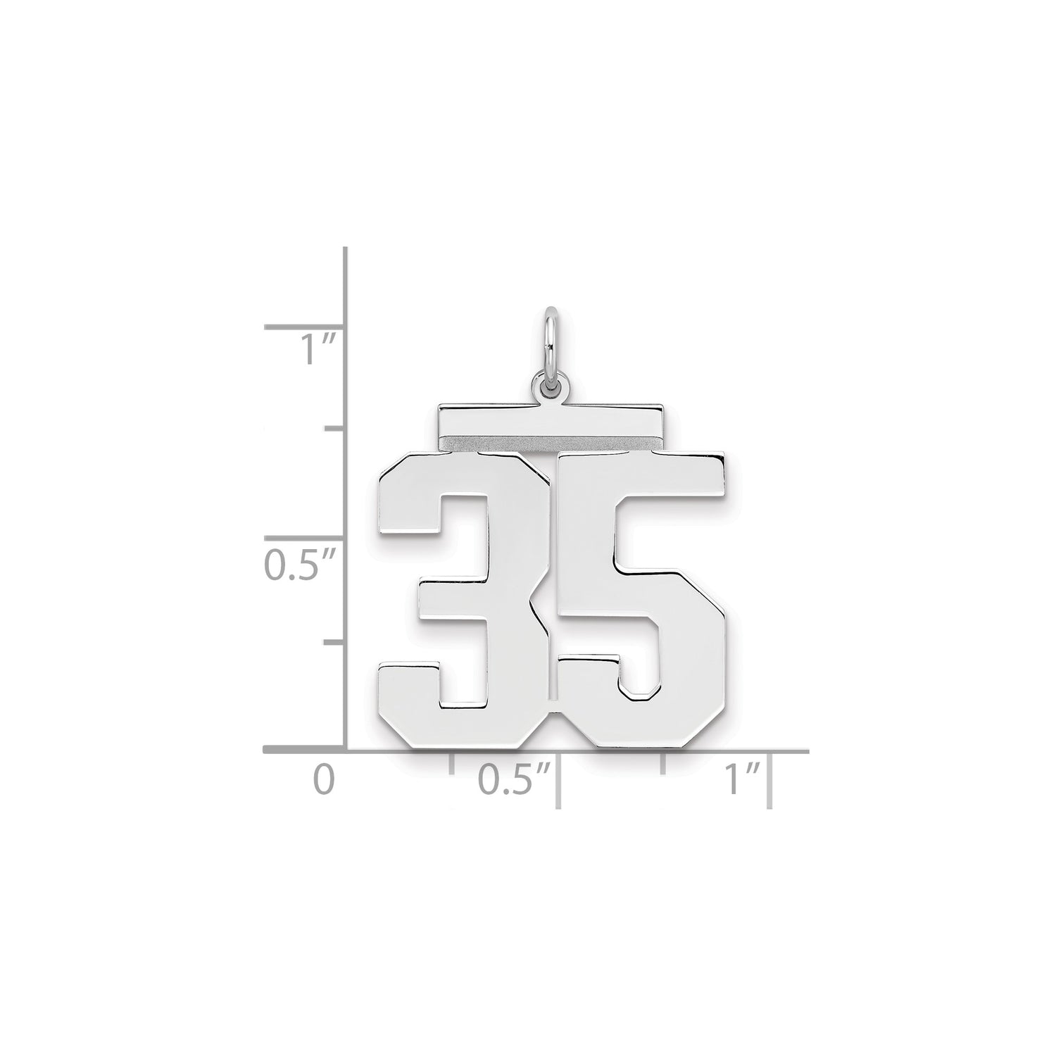 Large Polished Number 35 Charm Pendant in Real 925 Sterling Silver