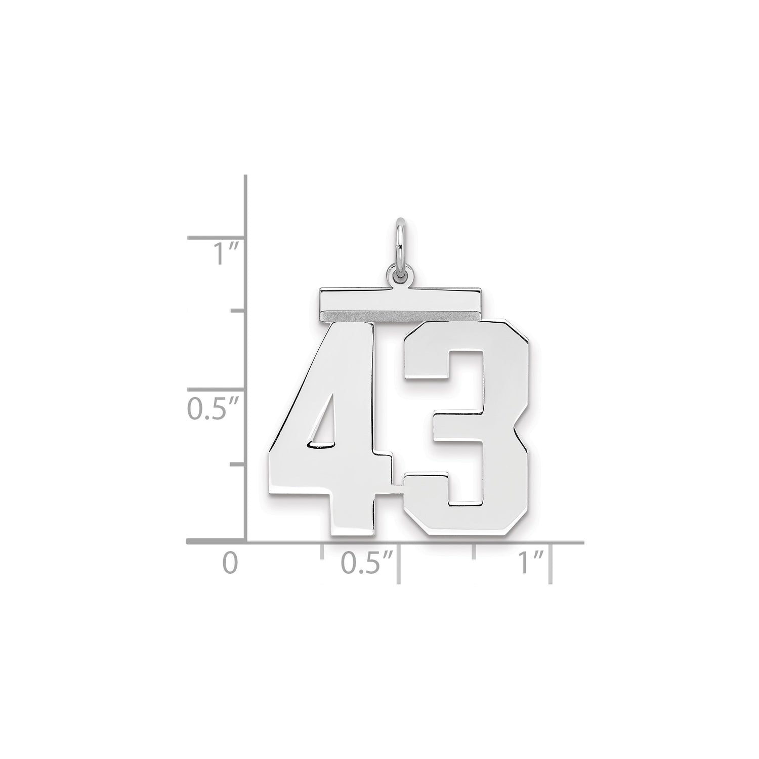 Large Polished Number 43 Charm Pendant in Real 925 Sterling Silver