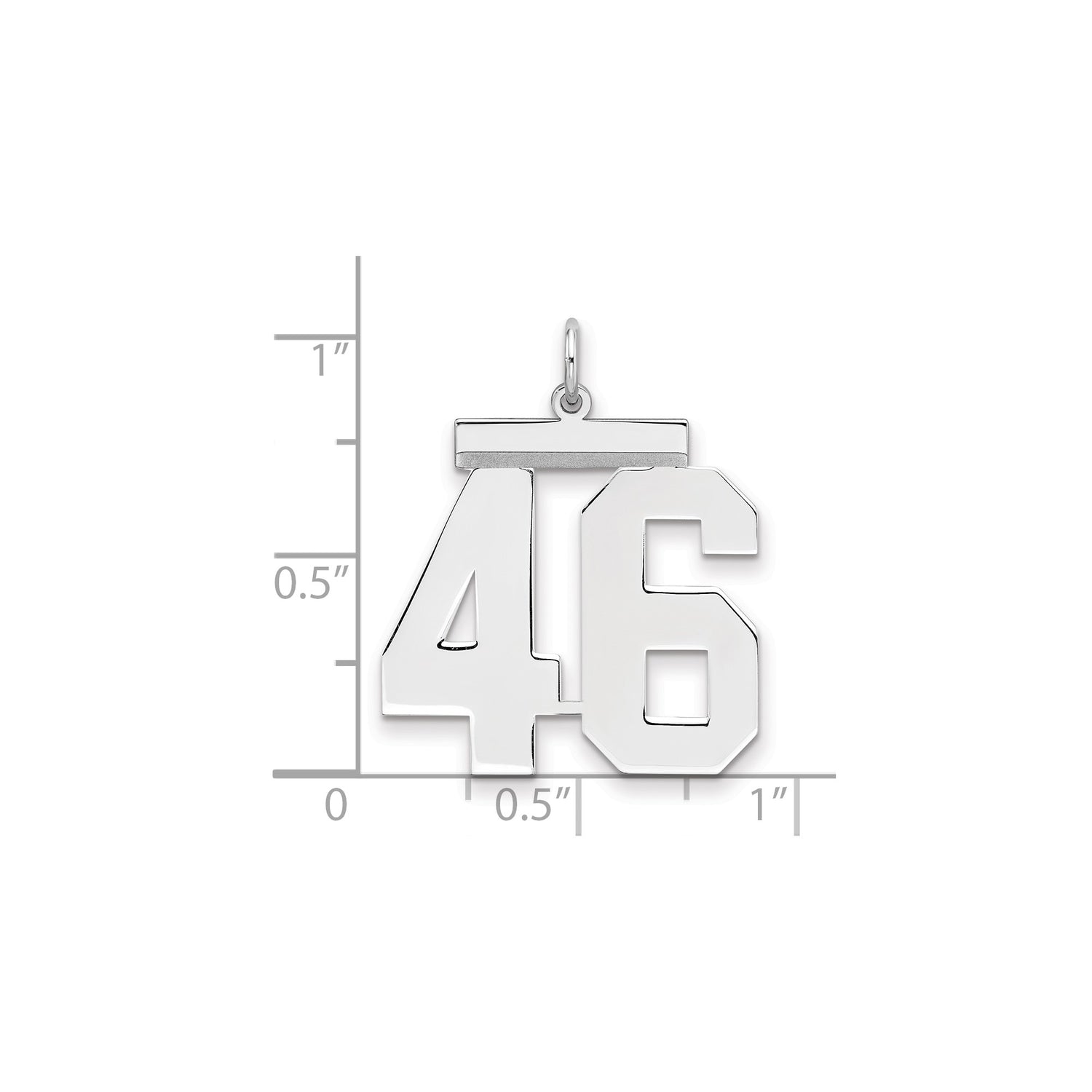 Large Polished Number 46 Charm Pendant in Real 925 Sterling Silver