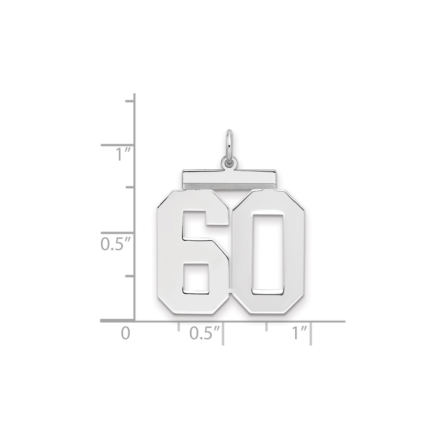 Large Polished Number 60 Charm Pendant in Real 925 Sterling Silver
