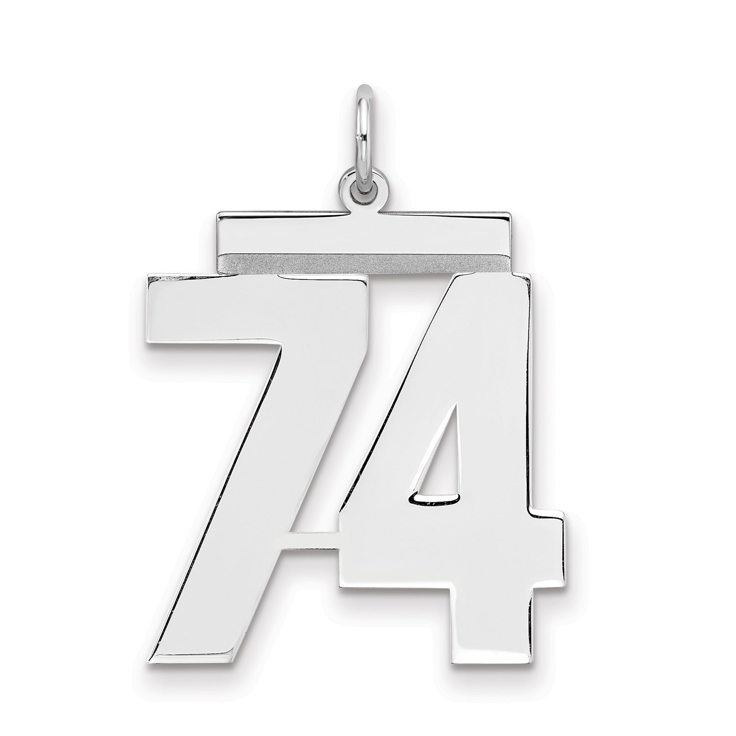 Large Polished Number 74 Charm Pendant in Real 925 Sterling Silver