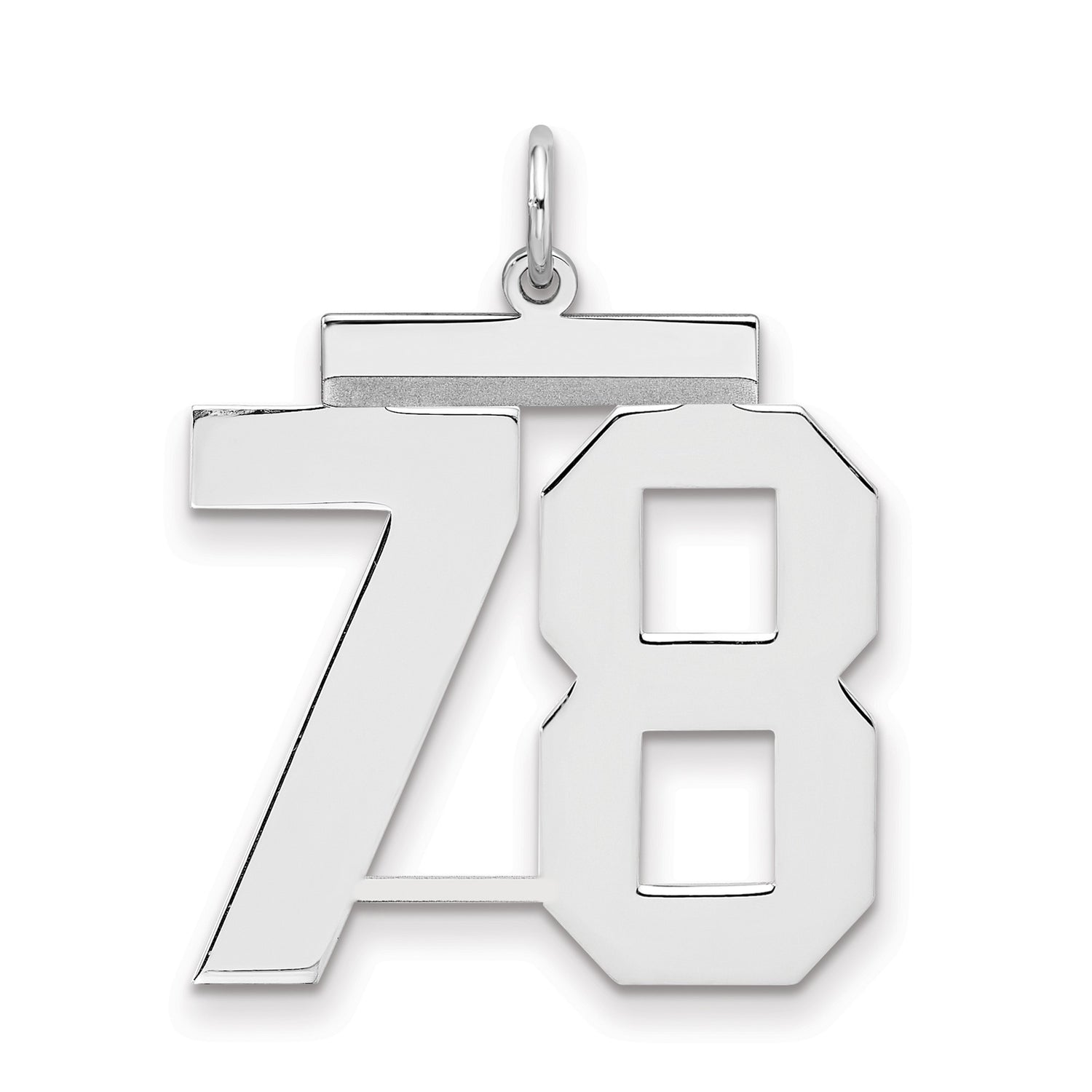 Large Polished Number 78 Charm Pendant in Real 925 Sterling Silver