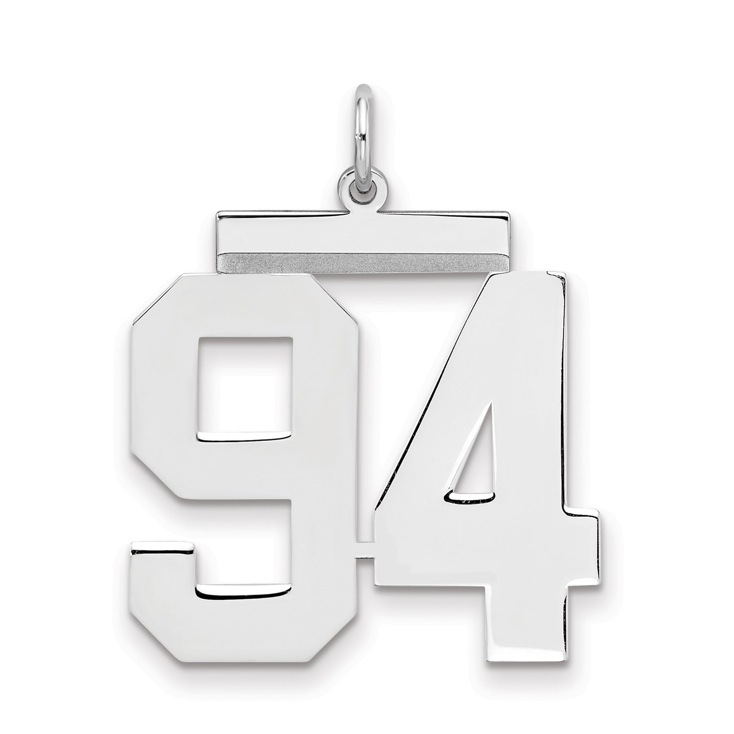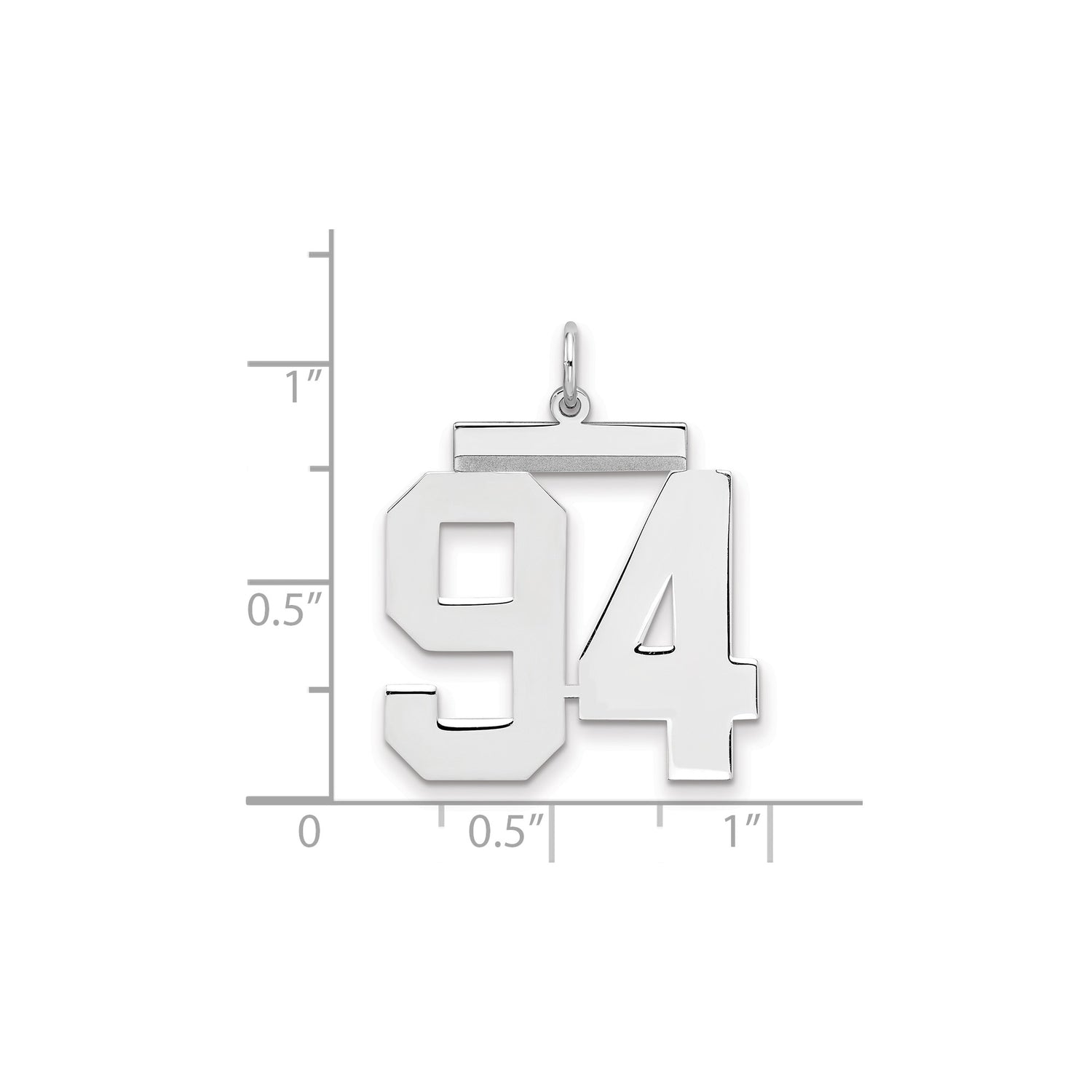 Large Polished Number 94 Charm Pendant in Real 925 Sterling Silver