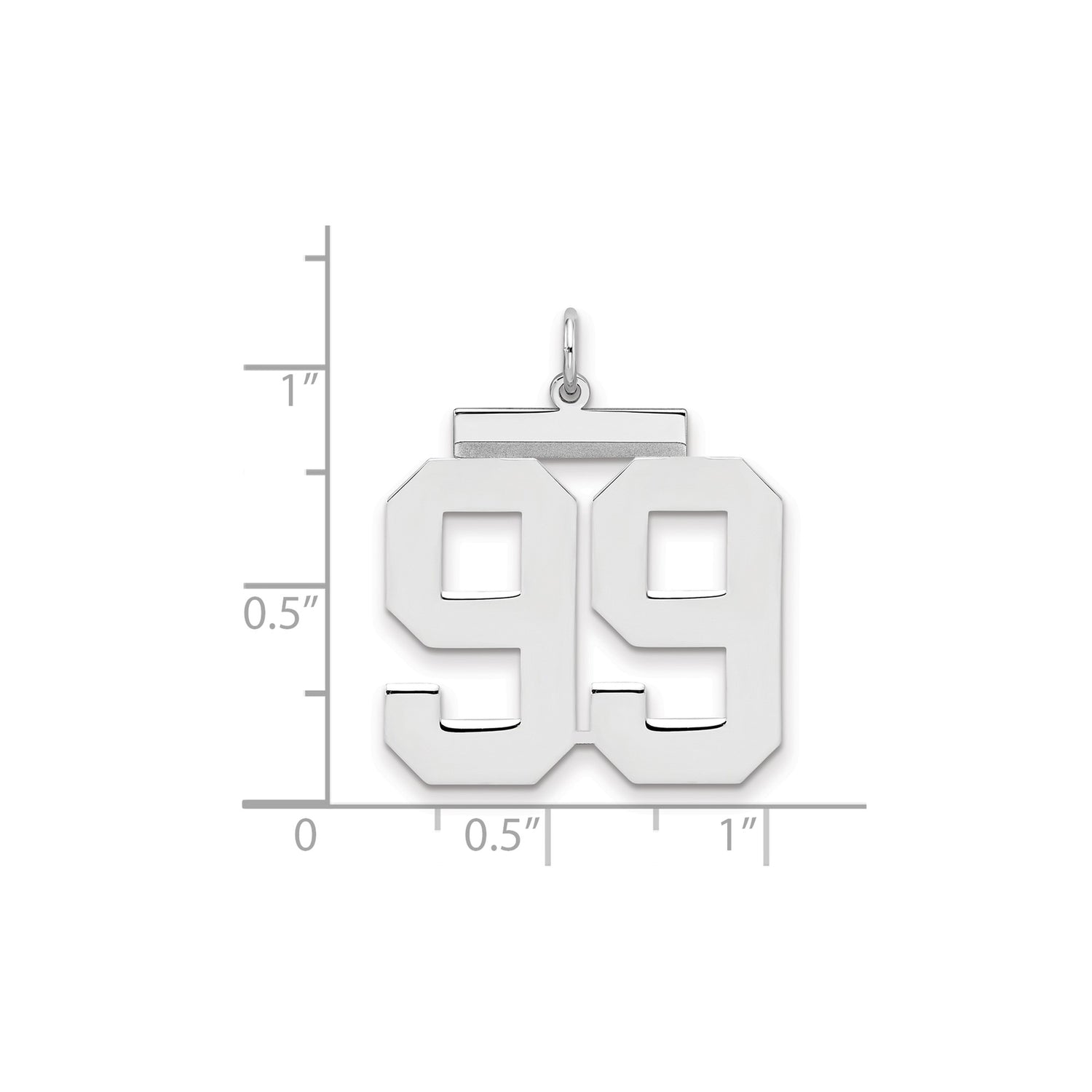 Large Polished Number 99 Charm Pendant in Real 925 Sterling Silver