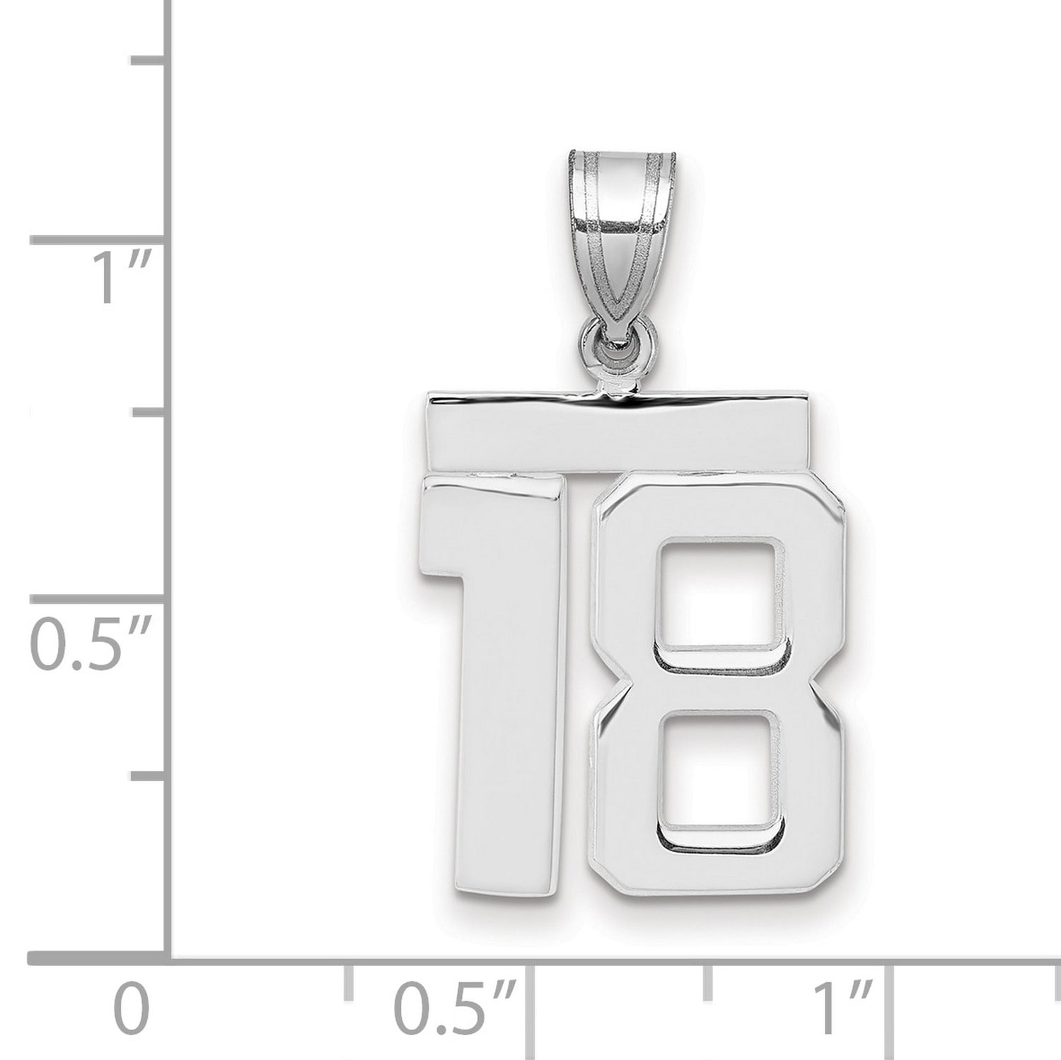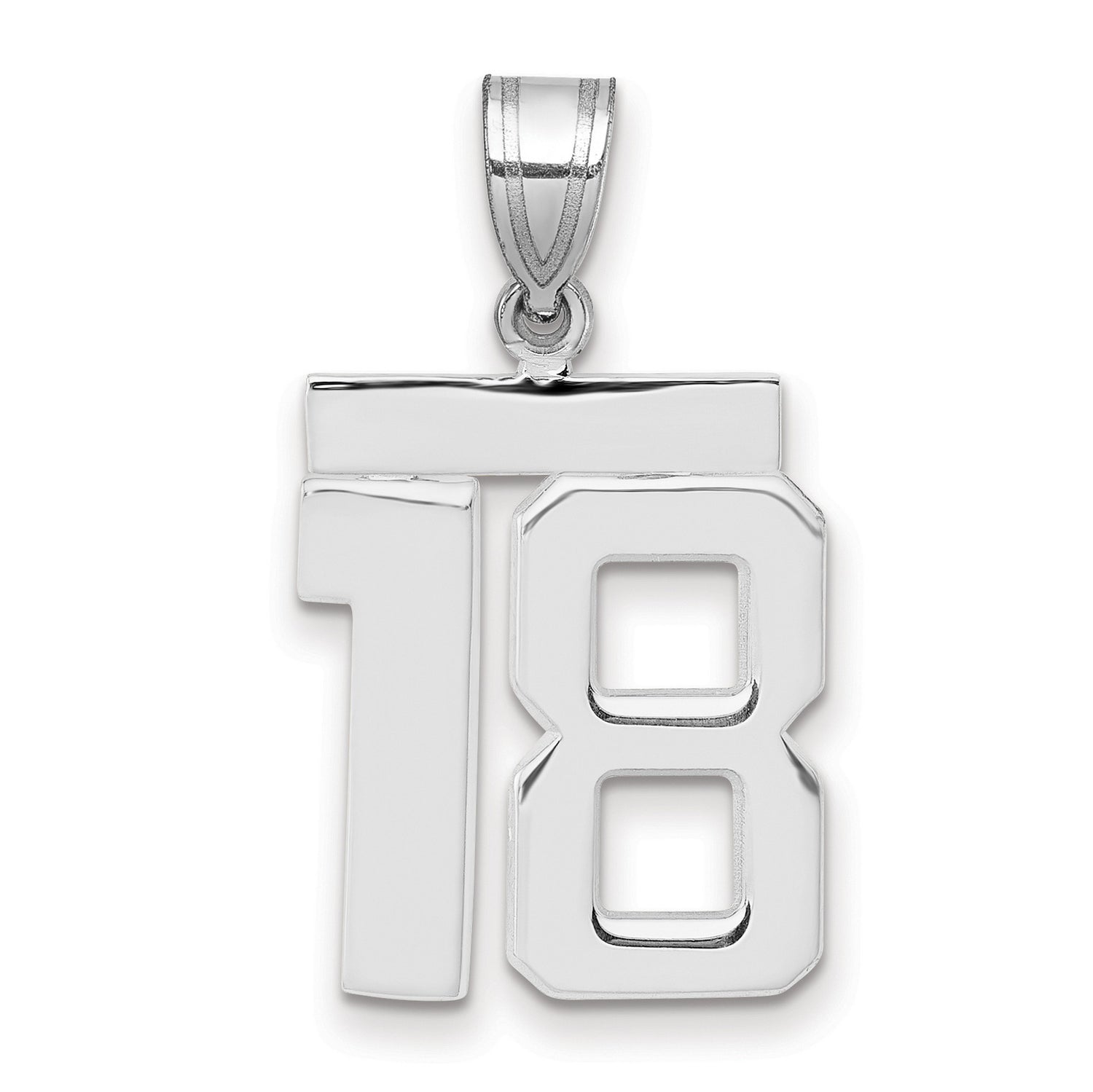Medium Polished Number 18 Charm Pendant in Real 14k White Gold