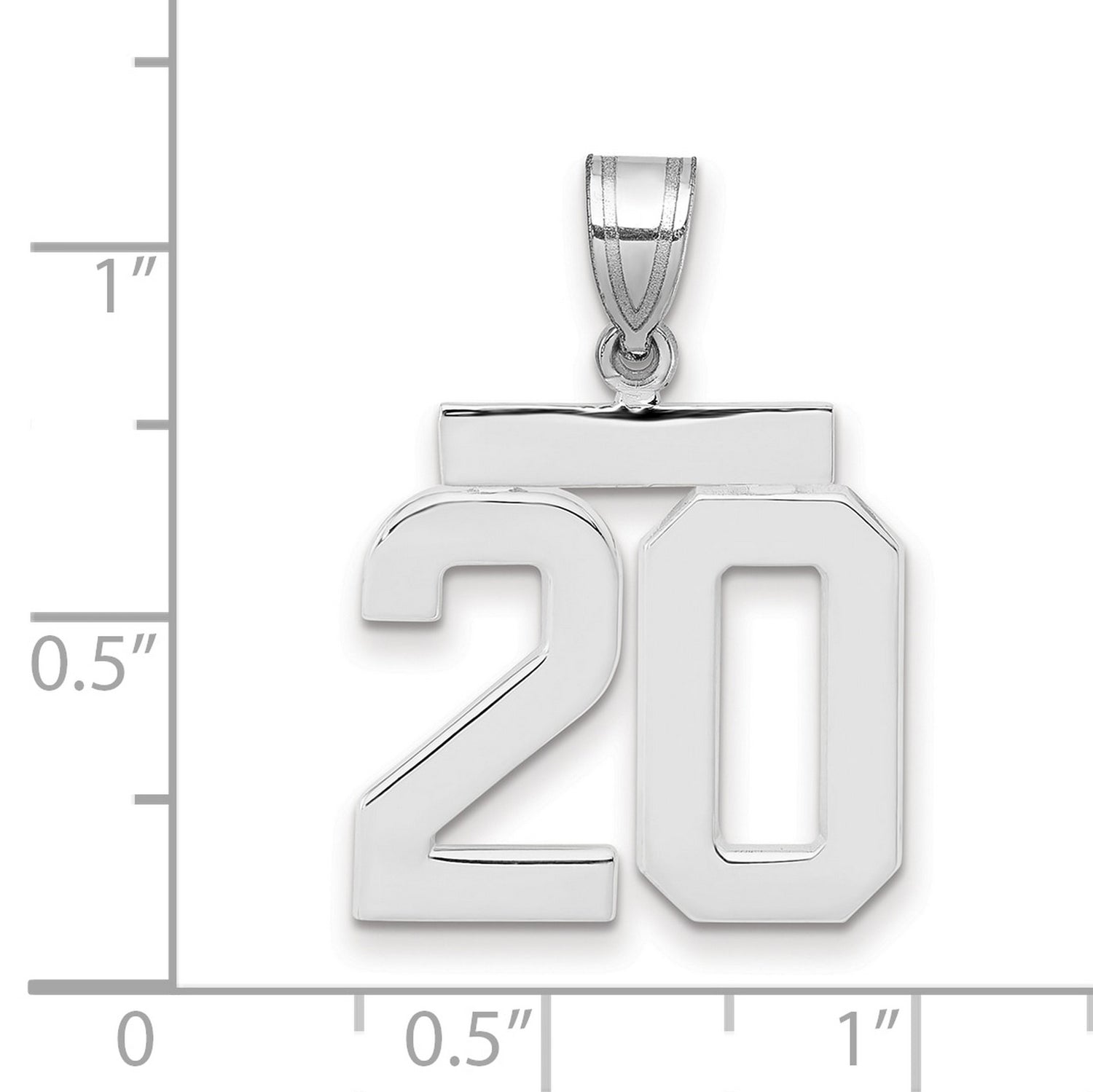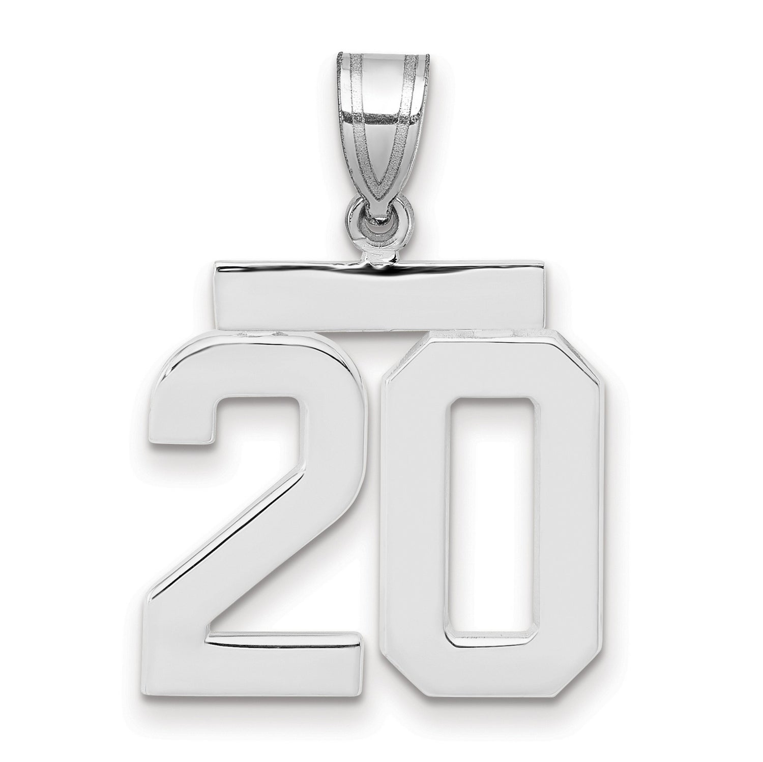 Medium Polished Number 20 Charm Pendant in Real 14k White Gold