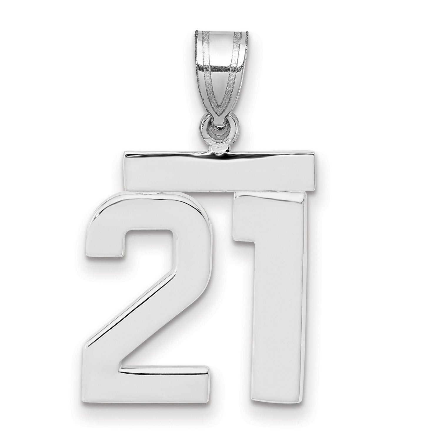 Medium Polished Number 21 Charm Pendant in Real 14k White Gold