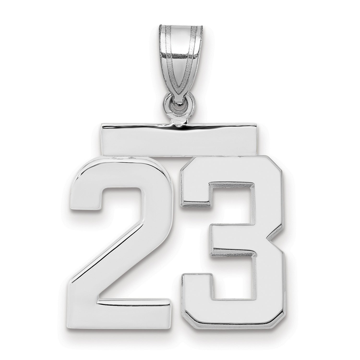 Medium Polished Number 23 Charm Pendant in Real 14k White Gold