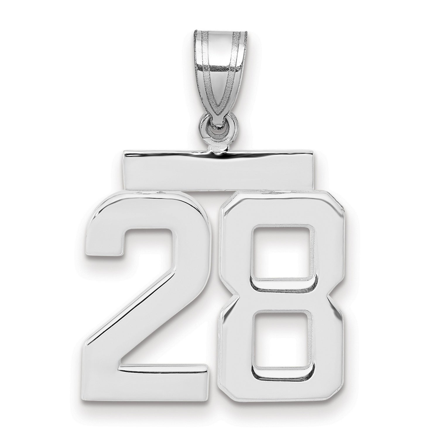 Medium Polished Number 28 Charm Pendant in Real 14k White Gold