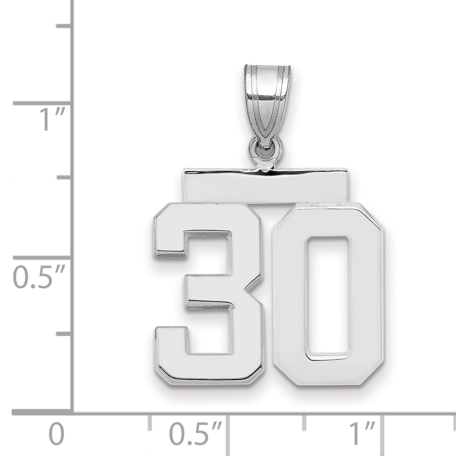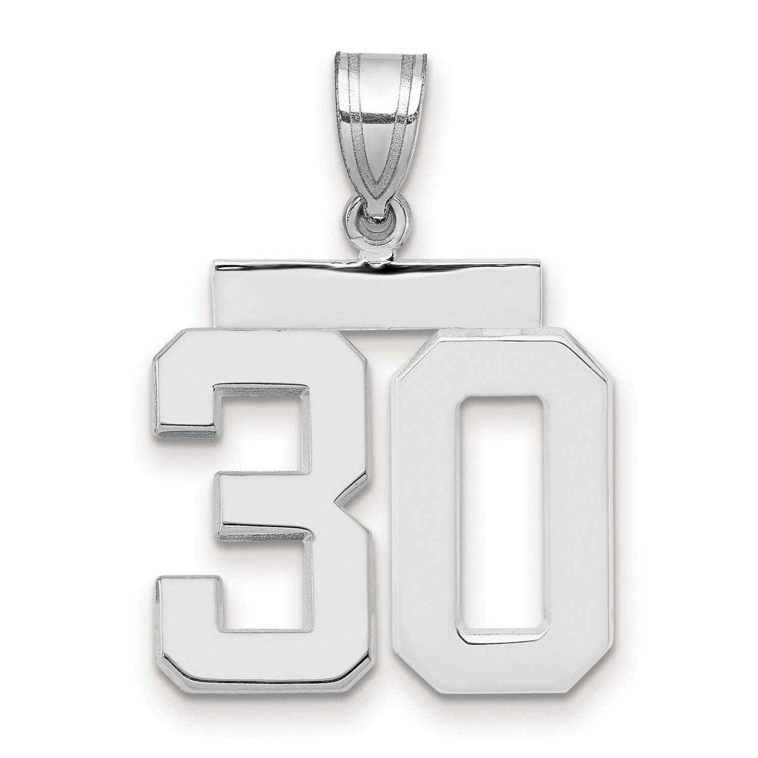 Medium Polished Number 30 Charm Pendant in Real 14k White Gold
