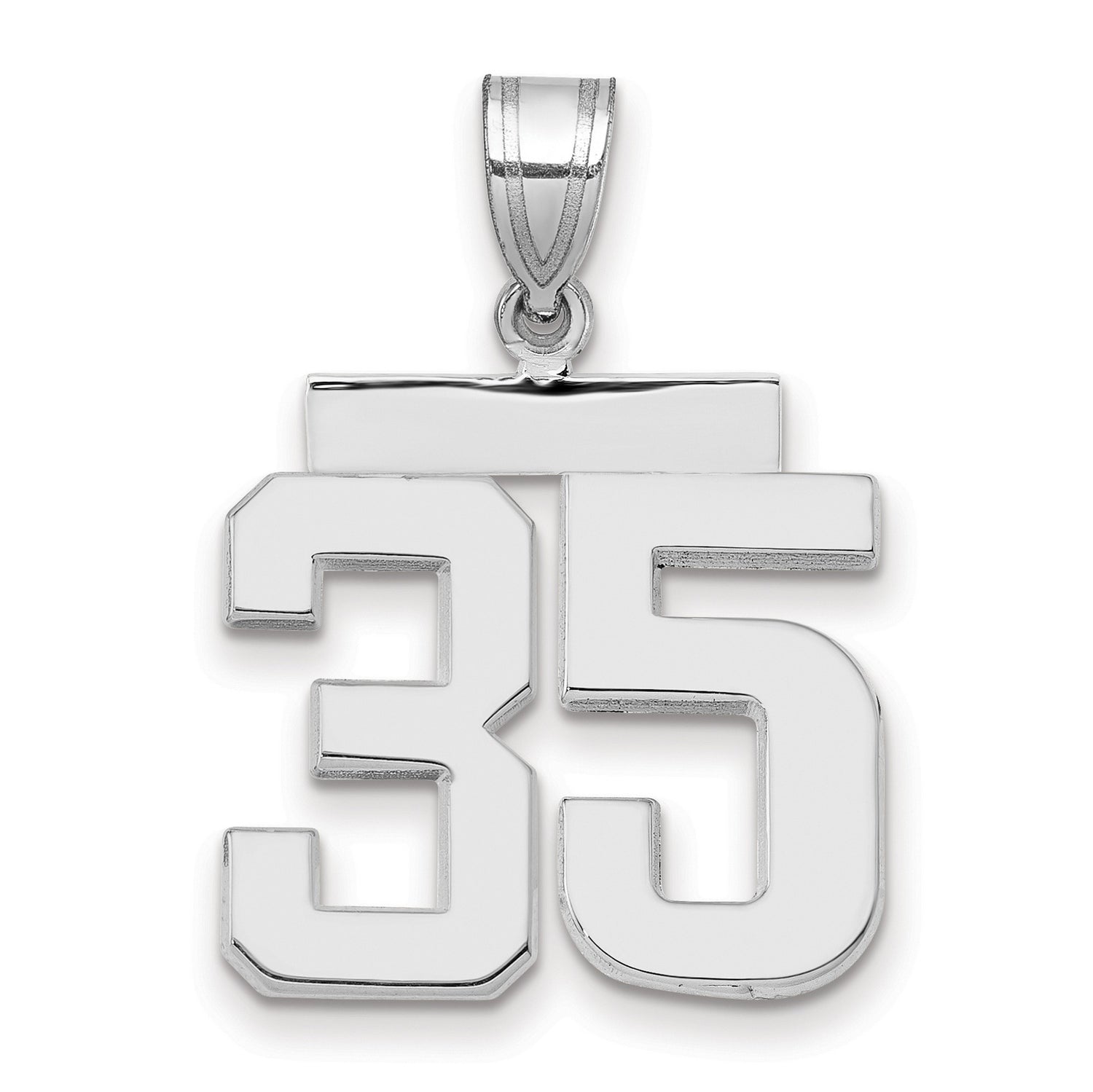 Medium Polished Number 35 Charm Pendant in Real 14k White Gold