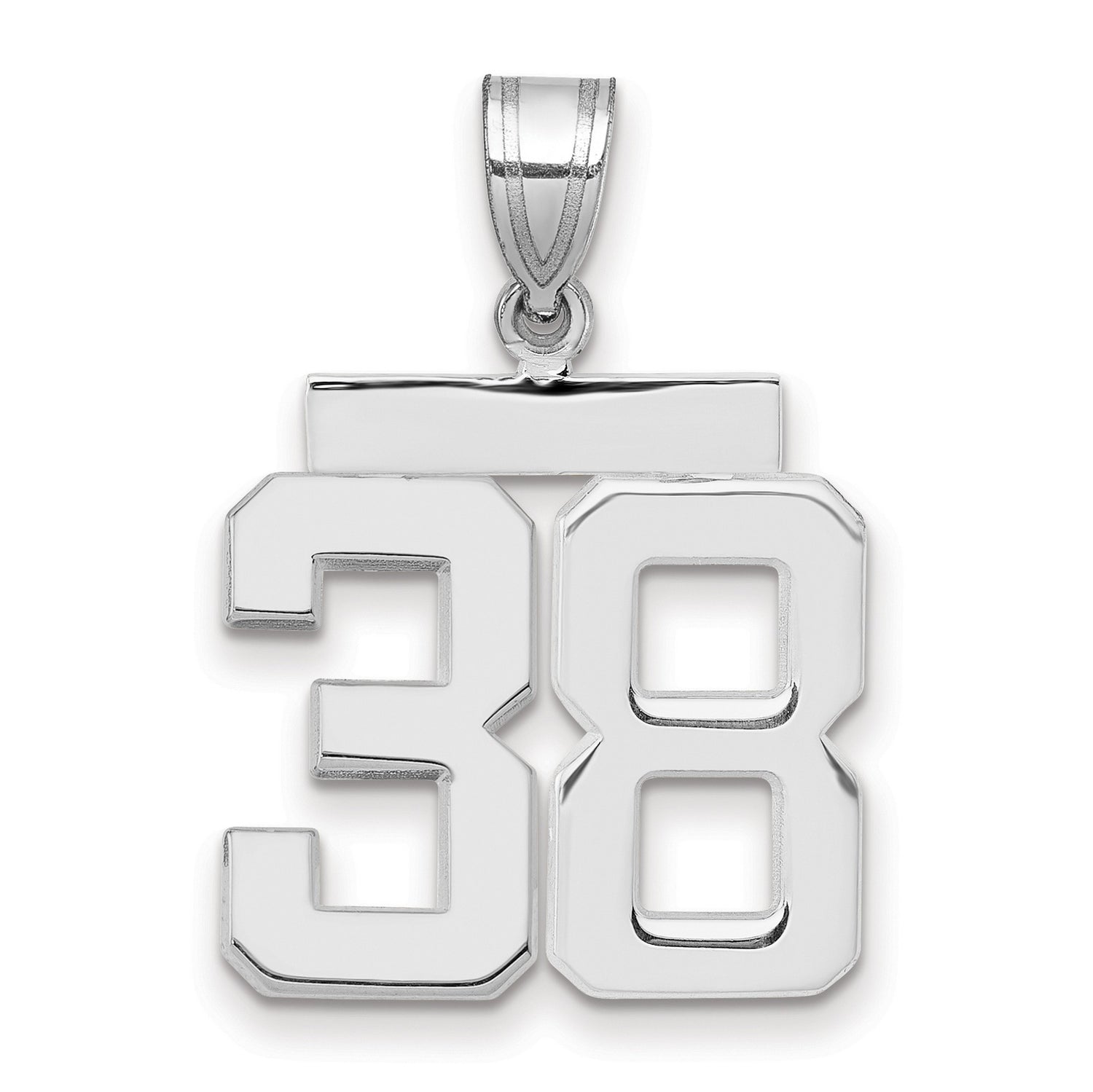 Medium Polished Number 38 Charm Pendant in Real 14k White Gold