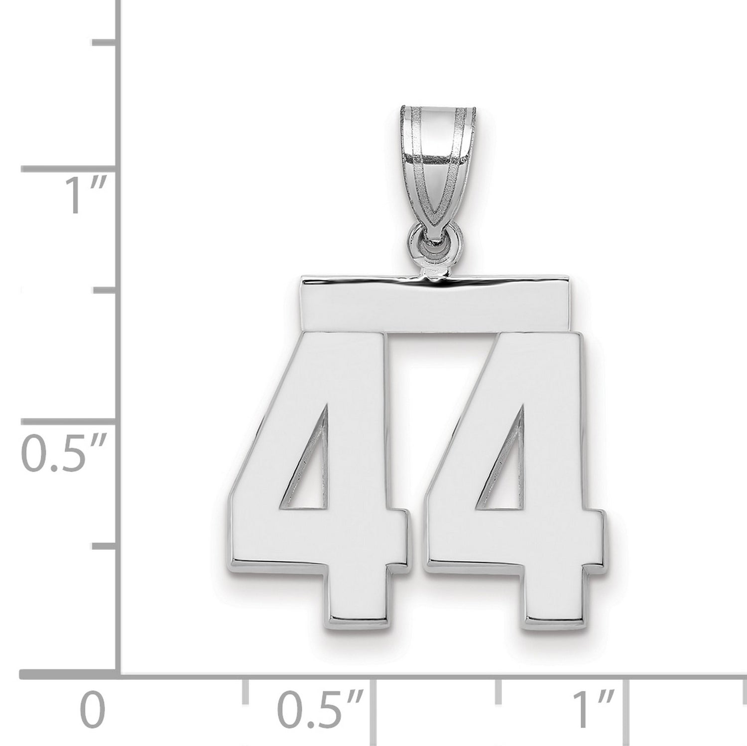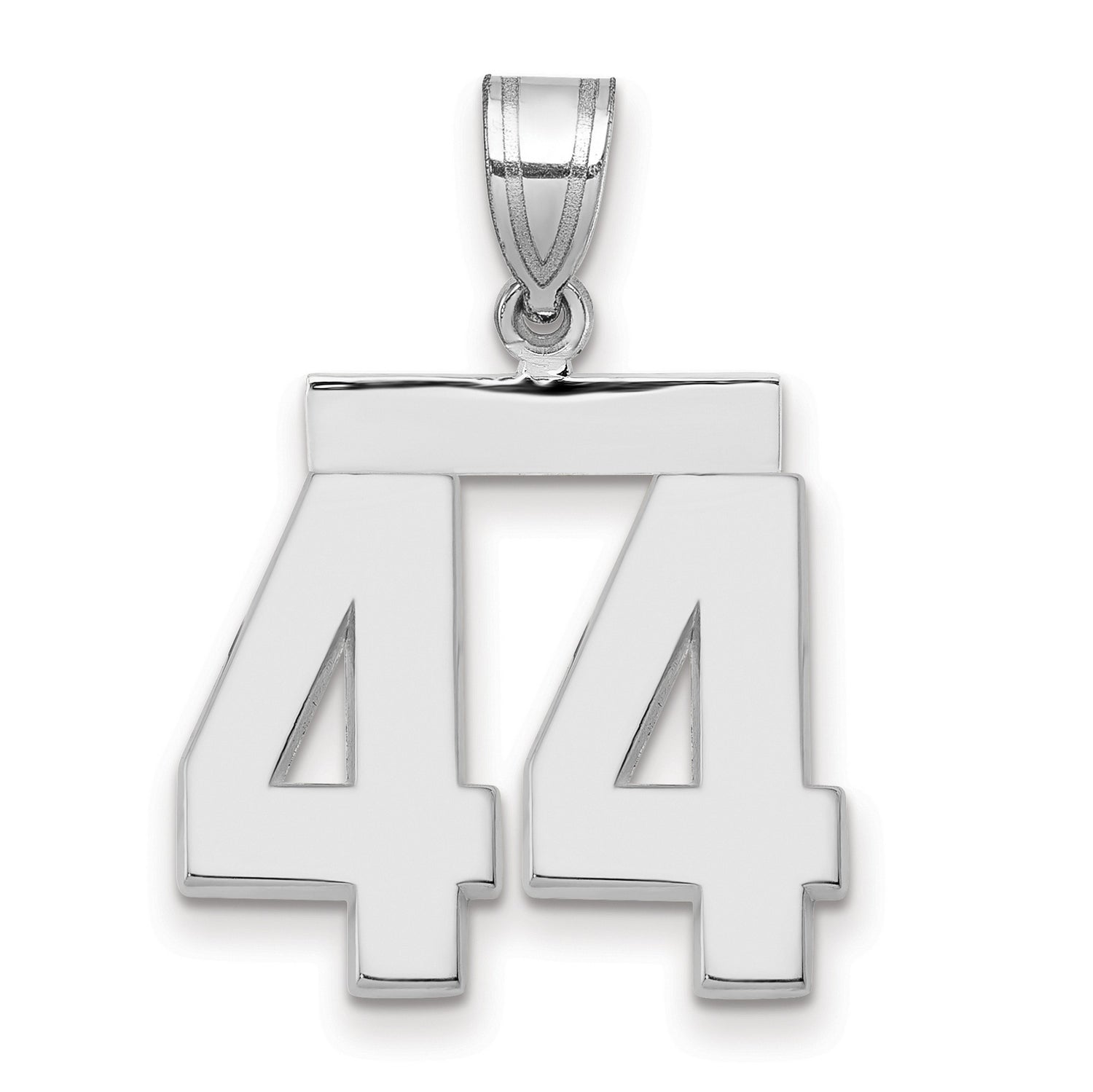 Medium Polished Number 44 Charm Pendant in Real 14k White Gold