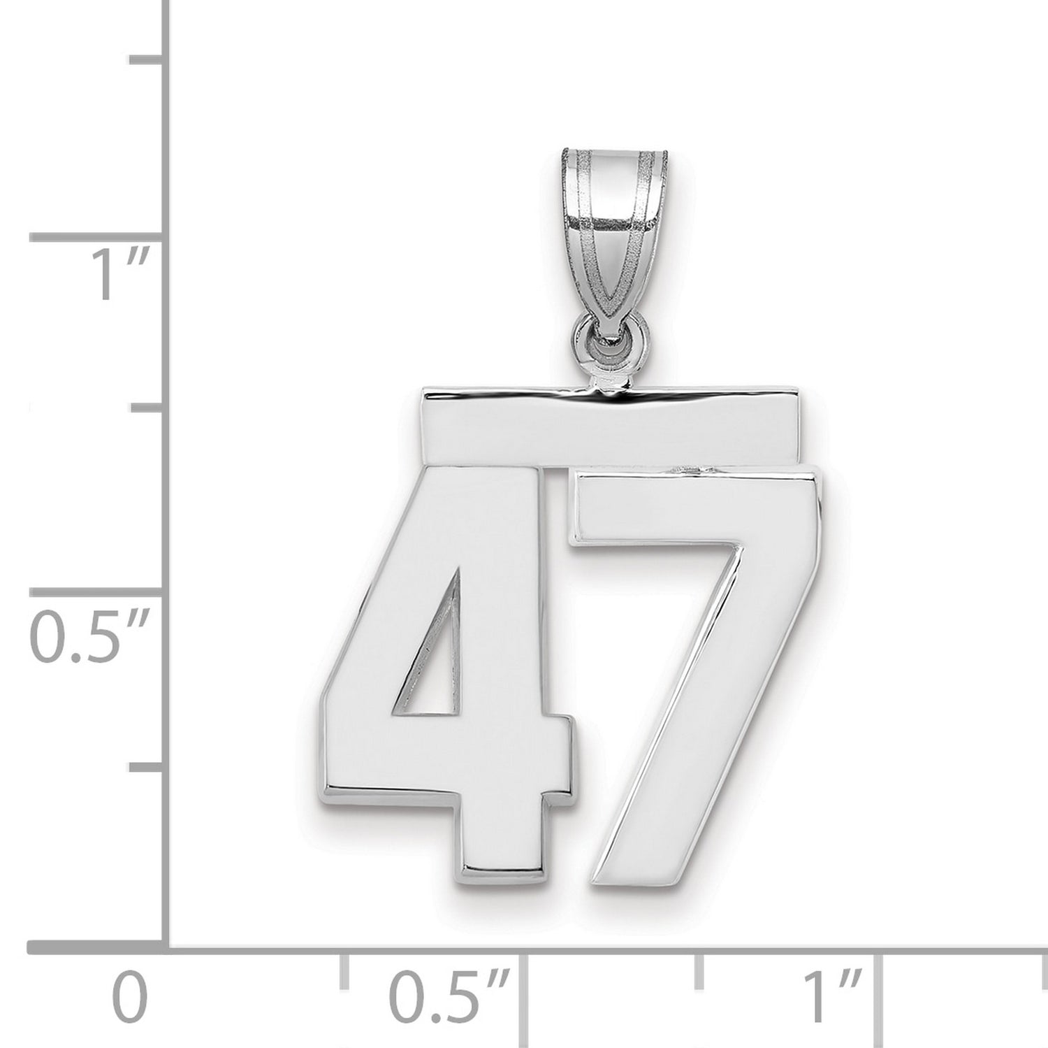 Medium Polished Number 47 Charm Pendant in Real 14k White Gold