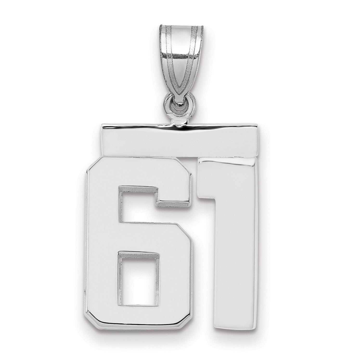 Medium Polished Number 61 Charm Pendant in Real 14k White Gold