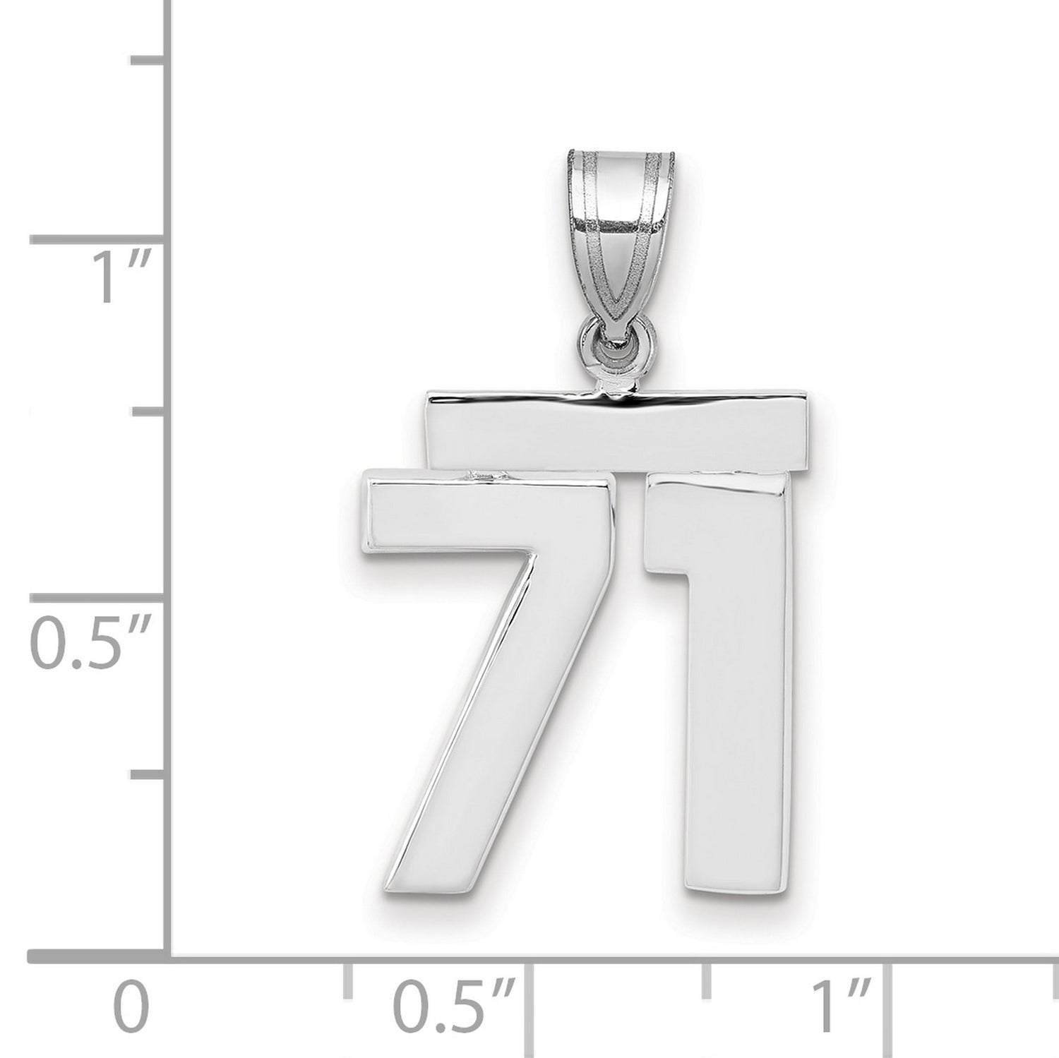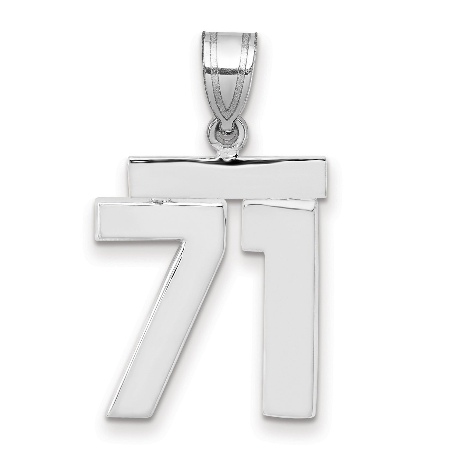 Medium Polished Number 71 Charm Pendant in Real 14k White Gold