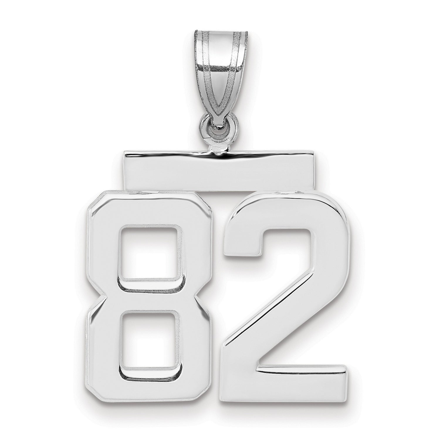 Medium Polished Number 82 Charm Pendant in Real 14k White Gold
