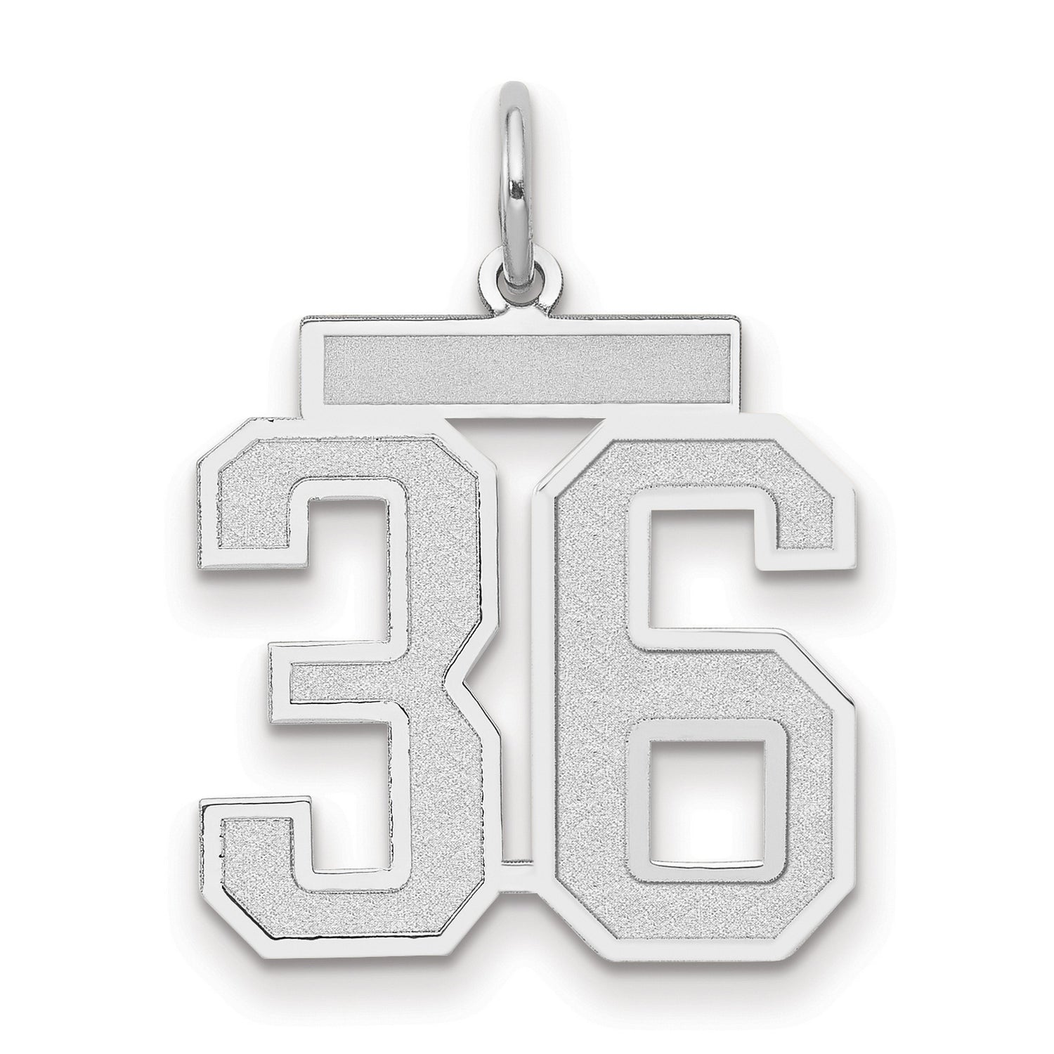 Medium Satin Number 36 Charm Pendant in Real 14k White Gold