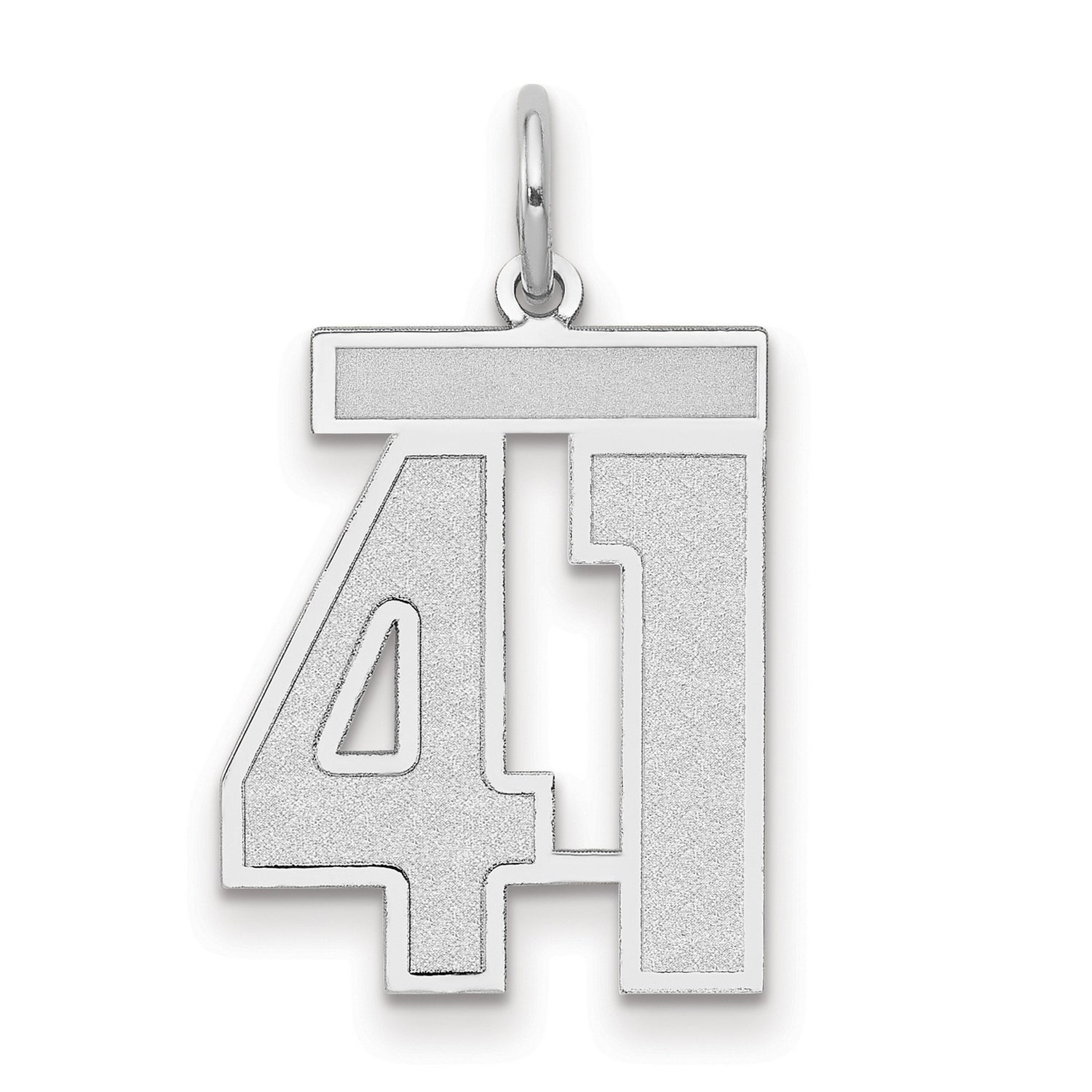 Medium Satin Number 41 Charm Pendant in Real 14k White Gold