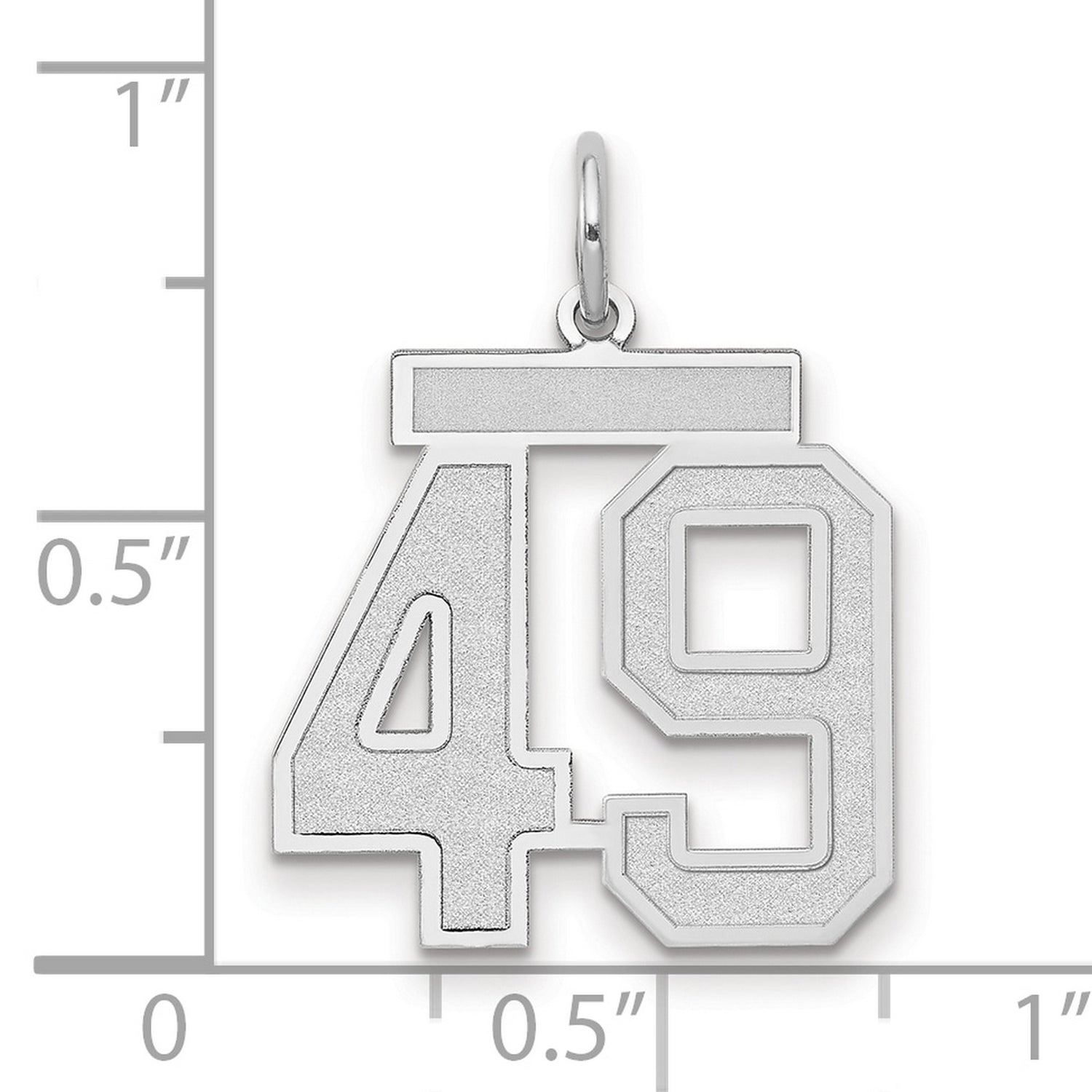 Medium Satin Number 49 Charm Pendant in Real 14k White Gold