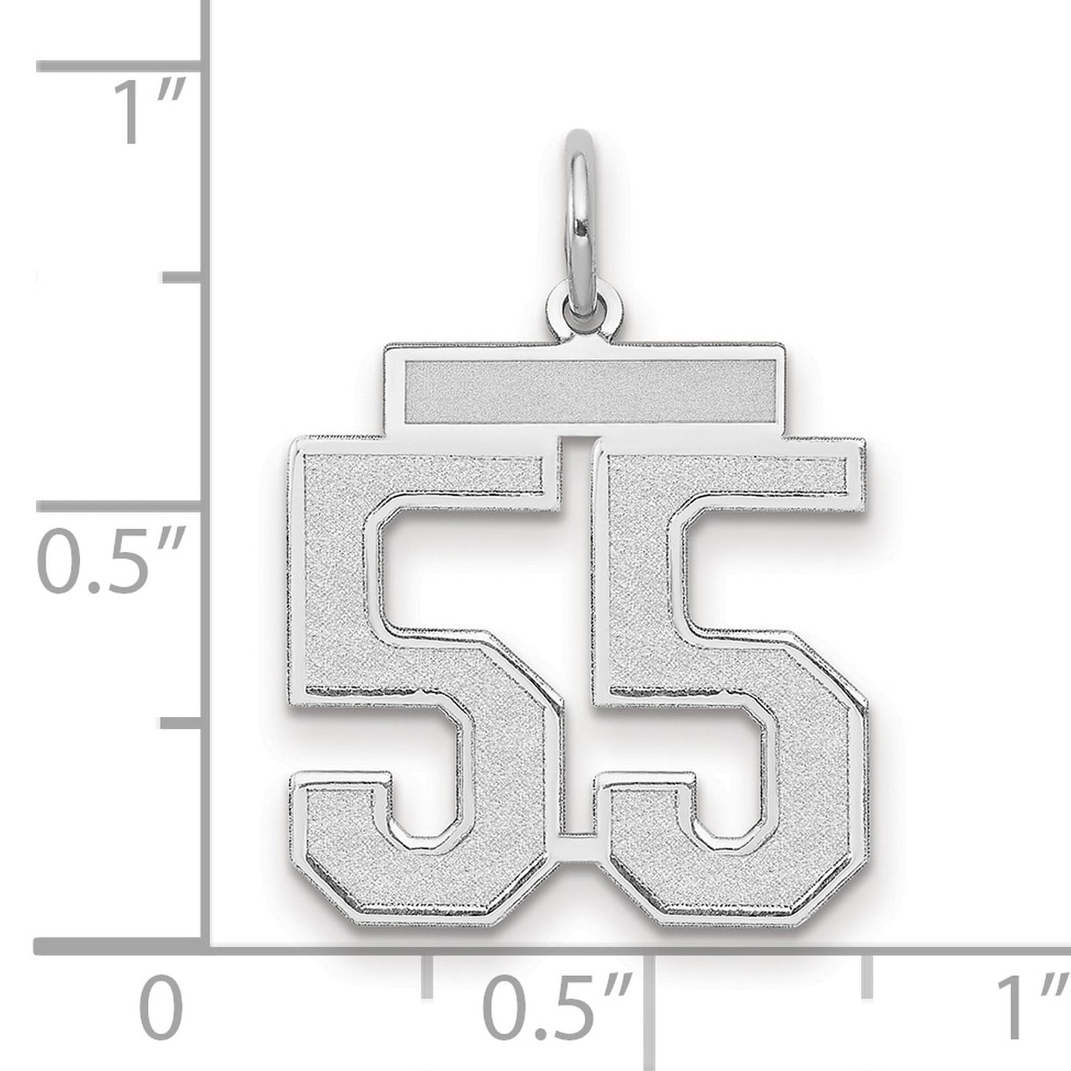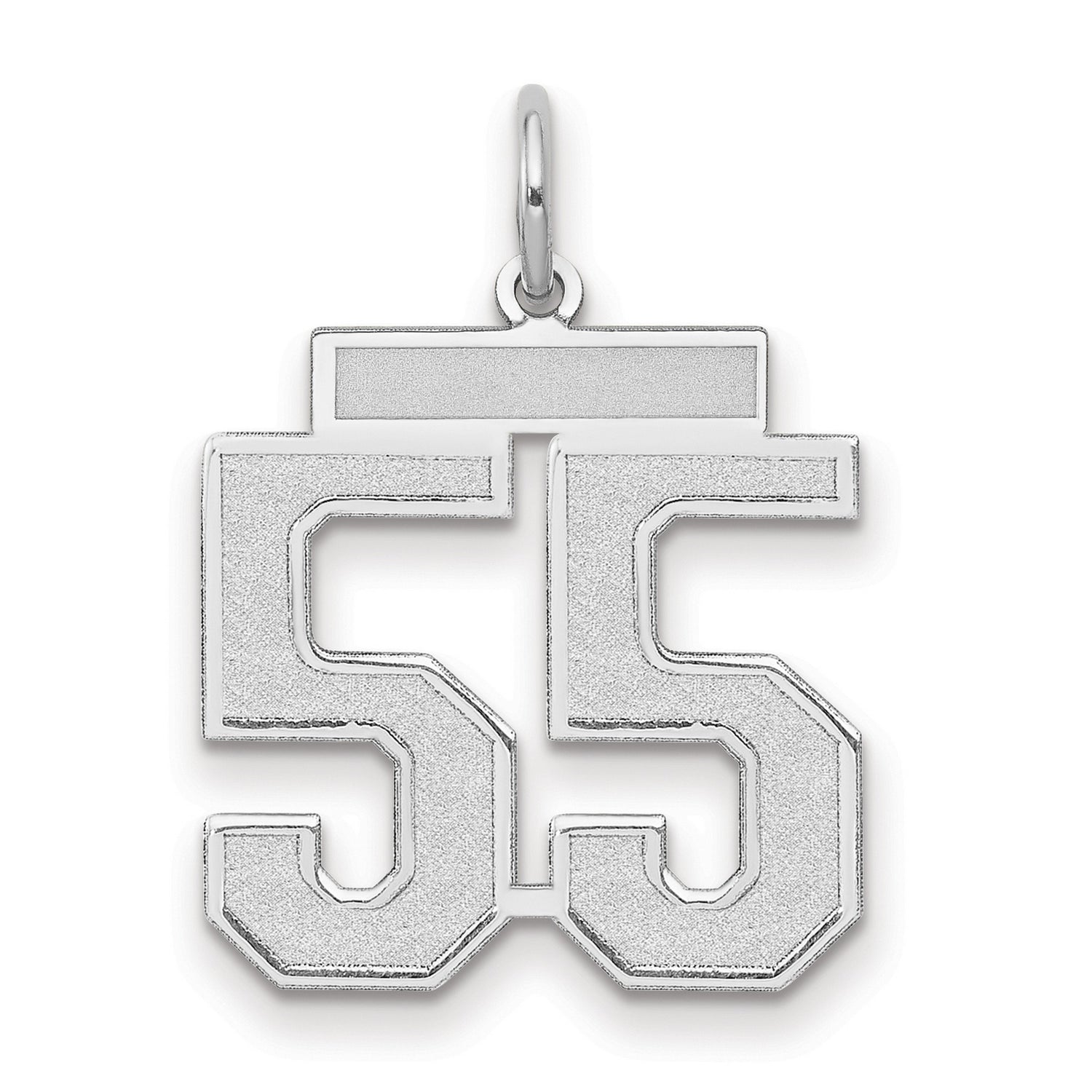 Whether you're celebrating a special occasion or simply enhancing your jewelry collection, the Medium Satin Number 55 Charm Pendant in Real 14k White Gold is a compelling choice. Its classic design and meaningful significance make it a timeless keepsake.