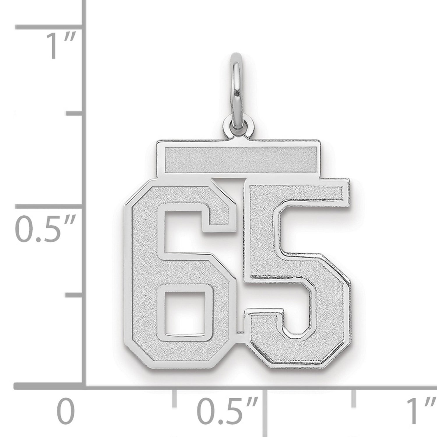 Medium Satin Number 65 Charm Pendant in Real 14k White Gold