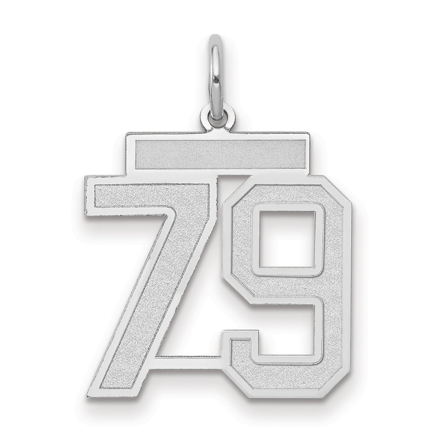 Medium Satin Number 79 Charm Pendant in Real 14k White Gold